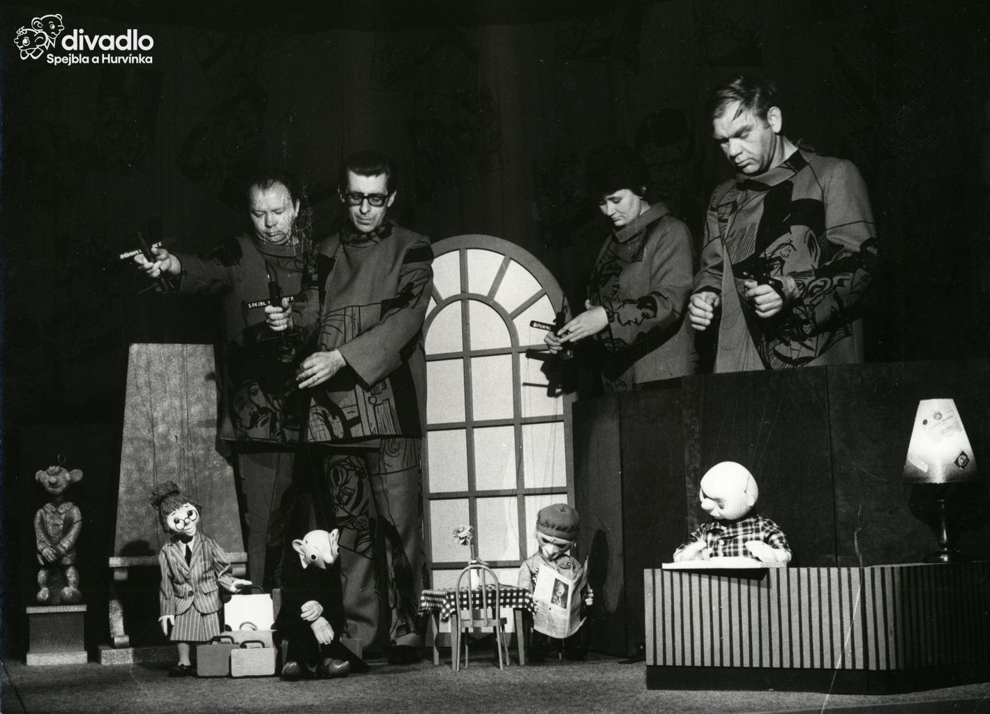 Spejbl mluví: Miloš Kirschner; Spejbl vodí: Miroslav Vomela; Hurvínek mluví: Miloš Kirschner; Hurvínek vodí: Bohuslav Šulc; Mánička mluví: Helena Štáchová; Mánička vodí: Jan Klos; Bábinka mluví: Helena Štáchová; Bábinka vodí: Luboš Homola; Hostinský mluví: Radko Haken; Hostinský vodí: Miloš Haken; Mladík mluví: Miroslav Černý; Mladík vodí: Jana Štěpková; SNB mluví: Miloš Kirschner; SNB vodí: Jan Klos; Fantóm mluví: Miloš Kirschner; Fantóm vodí: Jana Štěpková