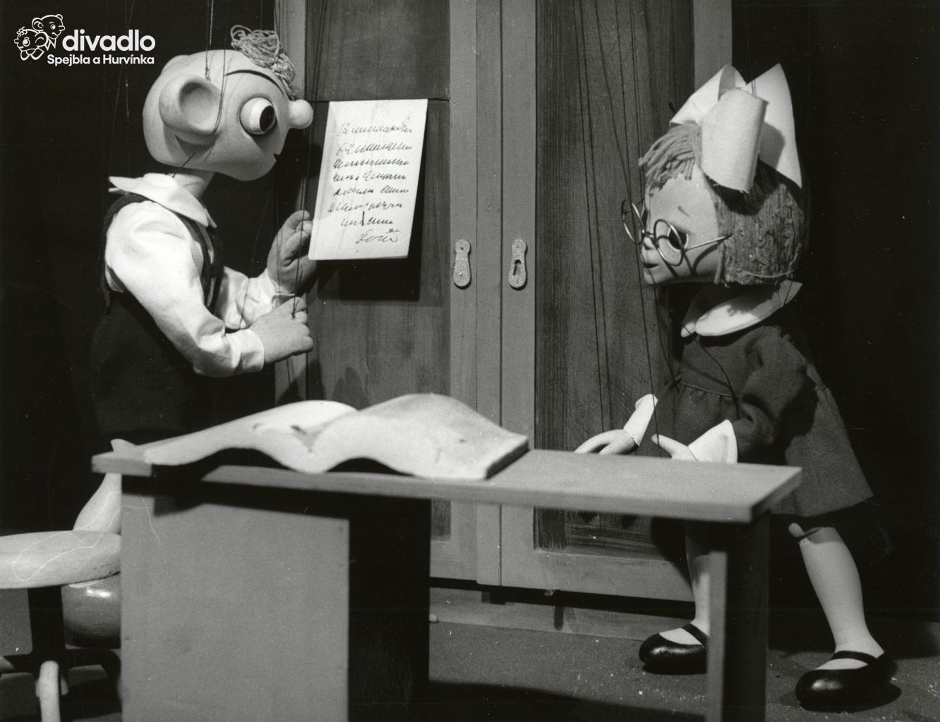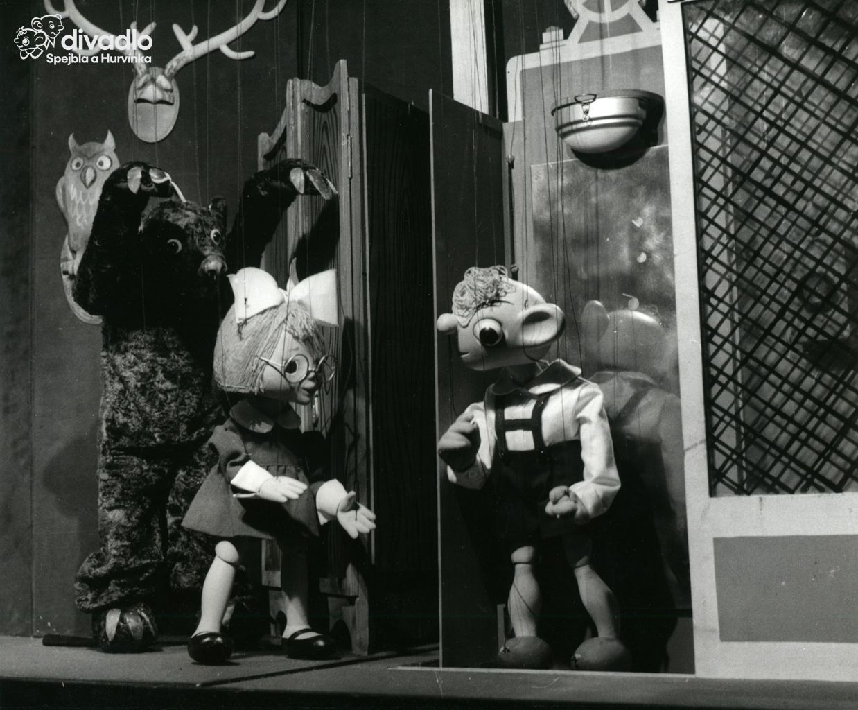 Spejbl mluví: Miloš Kirschner; Spejbl vodí: Miroslav Vomela; Hurvínek mluví: Miloš Kirschner; Hurvínek vodí: Bohuslav Šulc; Bábinka mluví: Helena Štáchová; Bábinka vodí: Luboš Homola; Mánička mluví: Helena Štáchová; Mánička vodí: Radko Haken; Drsňák (vulgo Vousáč) mluví: Miloš Kirschner; Drsňák (vulgo Vousáč) vodí: Miloš Haken; Titěra mluví: Radko Haken; Titěra vodí: Klára Hakenová; SNB I. mluví: Miloš Haken; SNB I. vodí: Radko Haken; SNB II. mluví: Miroslav Vomela; SNB II. vodí: Luboš Homola; Žeryk mluví: Miroslav Černý; Žeryk vodí: Jan Klos