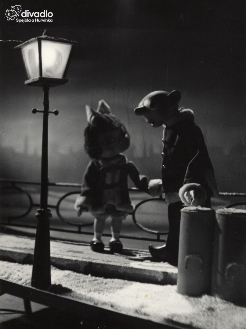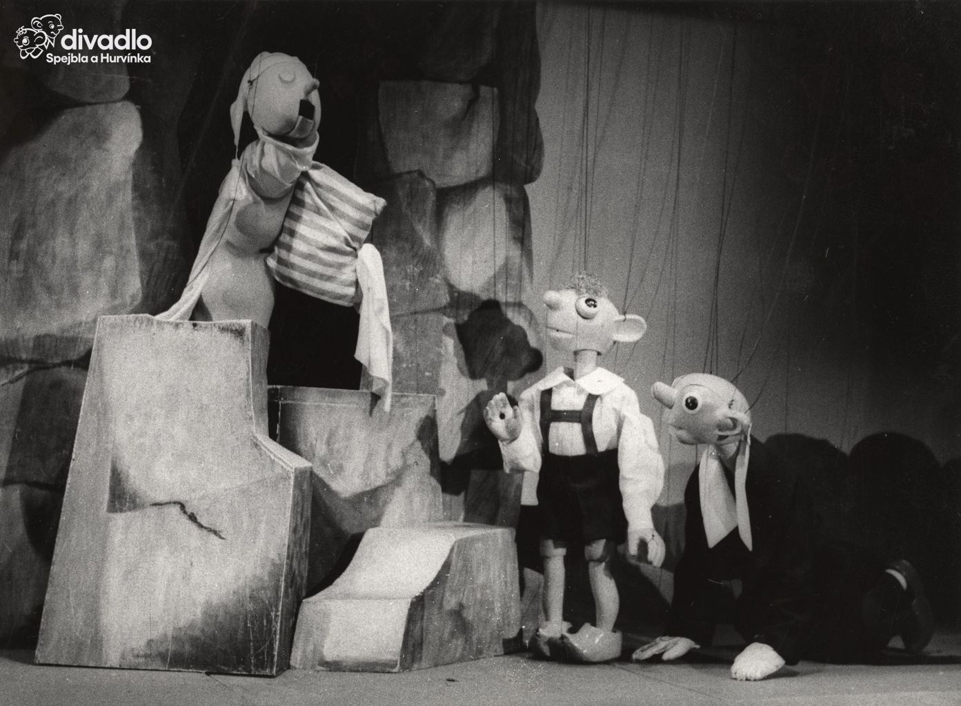 Spejbl, Hurvínek - mluví: Miloš Kirschner; Spejbl - vede: Zdeněk Červený; Hurvínek - vede: Jan Klos; Pikulík - mluví: Inka Šecová; Pikulík - vede: Václava Valentová; Pilc - mluví, Luciper - mluví: Radko Haken; Pilc - vede: Helena Štáchová; Luciper - vede: Inka Šecová; Basamáš - mluví: Miloš Kirschner; Basamáš - vede: Božena Weleková; Kabrhel - mluví: Zdeněk Červený; Kabrhel - vede: Zdeněk Lepšík; Hejkadlo - mluví: Zdeněk Lepšík; Hejkadlo - vede: Božena Weleková; Šplíchal - mluví: Zdeněk Lepšík; Šplíchal - mluví: Inka Šecová