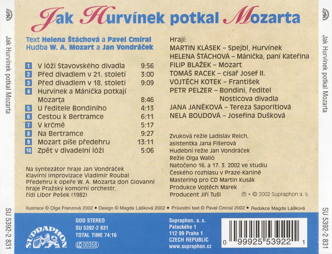 Naši Prahu Mozart, rodák z rakouského Salcburku, miloval a říkával „Moji i Pražané mi rozumějí!". Místa, kde v Praze pobýval, si můžete prohlédnout i dnes. Kousek od Václavského náměstí stojí Stavovské divadlo, tehdy Nosticovo, a když se postavíte zády k němu a dohlédnete až na konec Rytířské ulice, uvidíte dům, v němž Mozart bydlel a kam za ním Hurvínek s Máničkou běželi. Na Smíchově zase najdete vilu Bertramku, která patřila Josefíně Duškové, slavné pěvkyni a Mozartově nejlepší přítelkyni. V Bertramce je Mozartovo muzeum a když se tam vypravíte, ukážou vám i klavír (spinet), na kterém Mozart hrával. A zbývají nám ředitel Bondini a Tereza Saporitiová. Oba byli Italové a protože Italové mají na operu talent, už tehdy hráli a zpívali ve všech evropských divadlech. Tak - a teď už můžeme otevřít dveře lóže Stavovského divadla, kde má za chvíli začít představení Mozartovy opery Don Giovanni (říkáme jí také Don Juan). 29. října 1787 měla v Praze světovou premiéru, bývá nazývána „operou oper" - a paní Kateřina se rozhodla, že Mánička, Hurvínek i pan Spejbl musí ten skvost vidět. Takže v lóži potkáme všechny čtyři, ale vy, kteří znáte naše (a Hurvínkovy) příběhy z české historie, víte, že Hurvínek s Máničkou v lóži dlouho nevydrží. Stačí přece zapískat písničku a dějí se věci nevídané. Tak šije s nimi hezky užijte! Začíná příběh., který se napůl stal a napůl nestal - ale tak už to u příběhů bývá.
