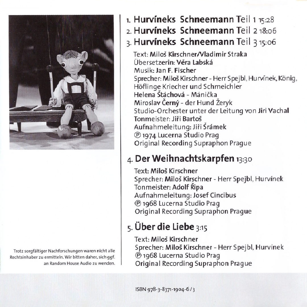 To nejlepší ze Spejbla a Hurvínka k vánocům v NJ obsahuje scénky: Der Weihnachtskarpfen, Hurvineks Schneemann, Über die Liebe. Znovu vydáno 2012.