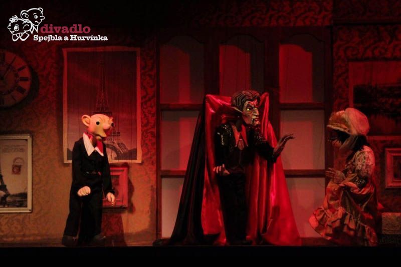 Paní Kateřinu a fatální Poulet Noir hraje Helena Štáchová a Hurvínka Spejbla a Drákulu Martin Klásek. Žerýka Ondřej Lážnovský. A marionety asi na patnácti nitích, aby i očima koulet mohly, četa loutkovodičů, jeden/jedna šikovnější než druhý/druhá.