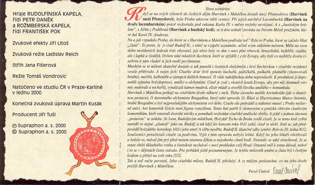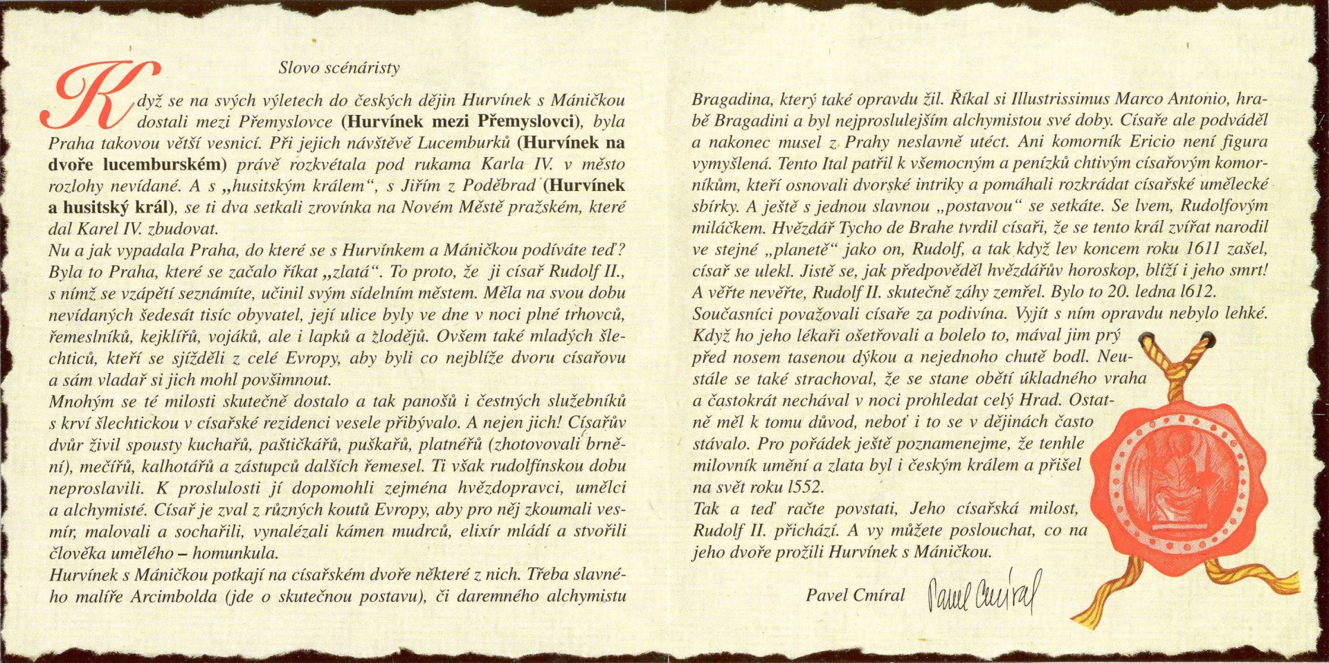 Tak a teď račte povstati, Jeho císařská milost, Rudolf II. přichází. A vy můžete poslouchat, co na jeho dvoře prožili Hurvínek s Máničkou.
