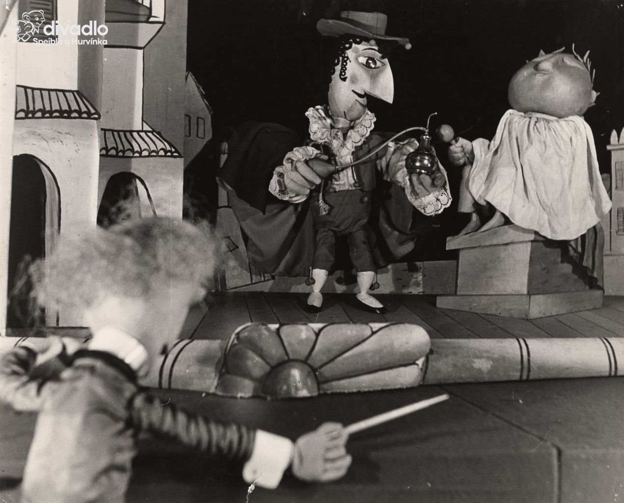 Stylová nejednotnost? Třeba, ale co na tom sejde, je-li konečný účin jednotný a jasný. Spejbl se stává velkým směšně tragickým typem, jemuž se jeho smolařství mile neodpouští, protože nikde není samoučelné. Komplikuje jen jeho základní ctižádost být slavným, velebným, vynášeným. Nejprve se mu smějete, ale pak je vám z něho smutno - a to je svědectvím promyšlené hluboké koncepce autorů hry. A Hurvínek se ze spoluhráče mění v protihráče. V okamžiku, kdy pláče nad domněle zraněným taťuldou, kdy bezmocně prosí, aby někdo pomohl, je nesmírně lidským dítětem, plným úzkosti a stezku a bolesti, že chcete věřit ve smířlivý konec. A přece přese všecku lítost, přes slzy nad nepodařeným galapředstavením a nad pokaženou otcovou ctižádostivou touhou, kterou do té doby jen ironicky glosuje, dokáže se vzepnout v závěru k odpovědi, která Spejbla konec konců soudí. To je poslední akord představení, z něhož jdete zaraženi vážným lidským dramatem. Přívlastku lidský je tu užito vědomě a nikoli tak docela v přeneseném slova smyslu.