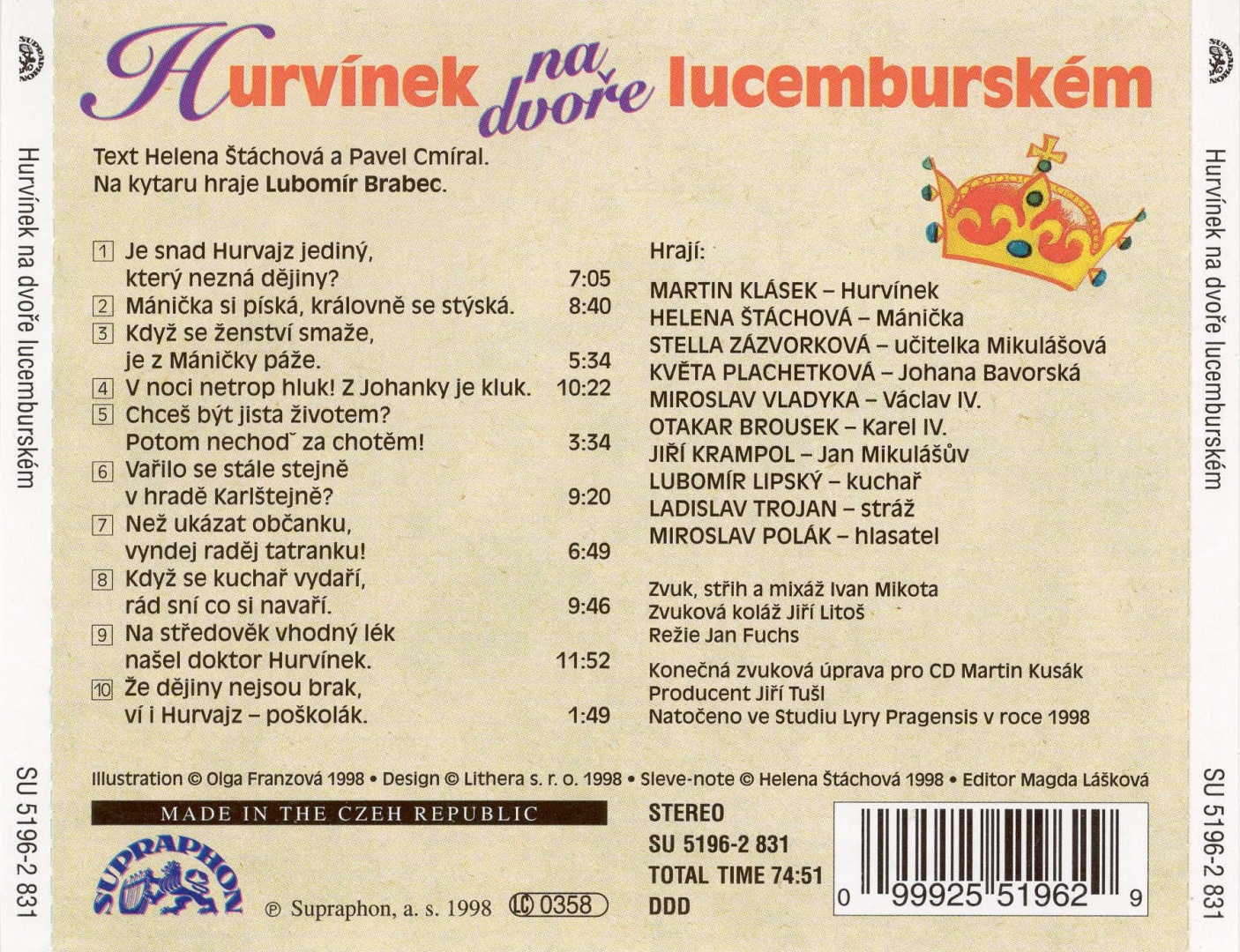 Helena Štáchová, ředitelka Divadla S+H, a scénárista Pavel Cmíral připravili v roce 1997 pro Supraphon projekt nové řady S+H, jejíž první díl HURVÍNEK MEZI PŘEMYSLOVCI si rychle našel své posluchače. V druhém titulu plánované řady se Hurvínek s Máničkou ocitají na dvoře lucemburském, aby se skamarádili s mladým králem Václavem IV. (Miroslav Vladyka) a pomohli v nouzi samotnému Karlu IV. (Otakar Brousek st.). Pro další role velkoryse pojatého snímku vybral režisér Jan Fuchs Stellu Zázvorkovou (učitelka Mikulášová), Lubomíra Lipského (kuchař), Jiřího Krampola a další známé herce, kteří spolupracovali s protagonisty Divadla S+H (Helena Štáchová a Martin Klásek) se zjevnou chutí. Scénář zaujal i kytarového virtuosa Lubomíra Brabce, který se postaral o scénickou hudbu.