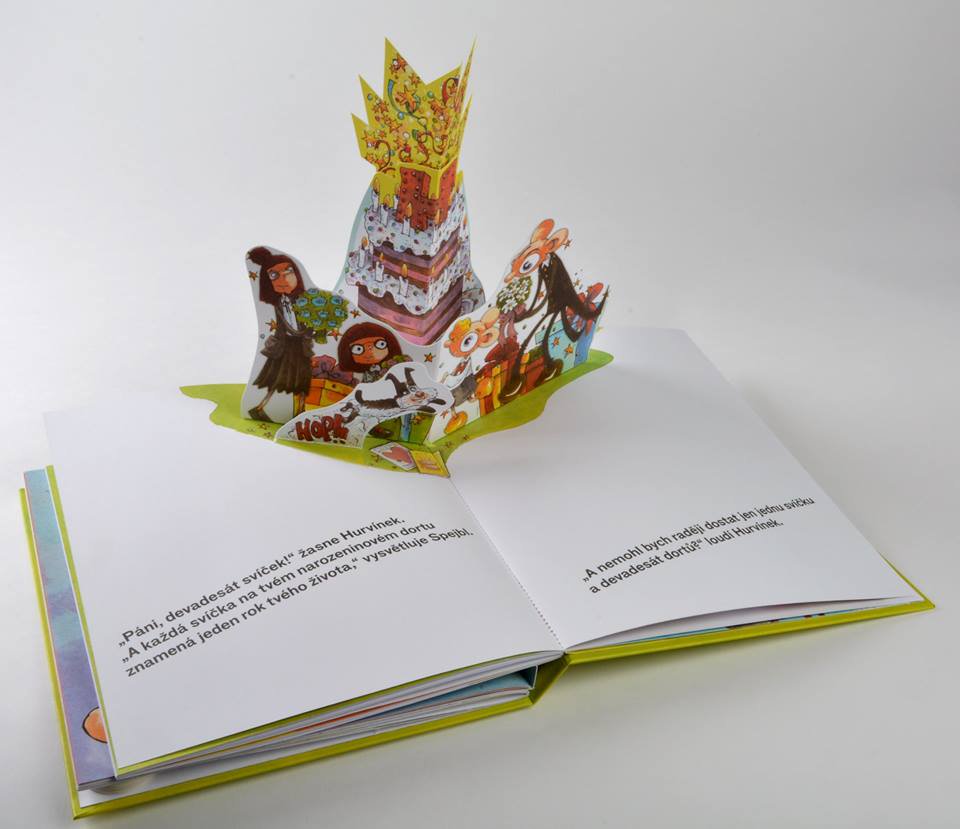 Publikace Hurvínek má narozeniny se představuje ve formě trojrozměrné knihy, v zahraničí známé jako pop up. Některé příběhy z ní doslova vyskočí ke čtenáři. Ilustrace jsou doplněny pohybovými mechanismy. Všechny tyto typy specifických knih jsou založeny na interakcích se čtenáři. Ten je tímto způsobem vtažen do humorného vyprávění o počátcích Josefa Spejbla v loutkovém divadle, dále líčí Spejblovo vzpomínání na rok 1926, kdy se poprvé na scéně objevil spolu s Hurvínkem, či setkání Hurvínka s Máničkou a paní Kateřinou.