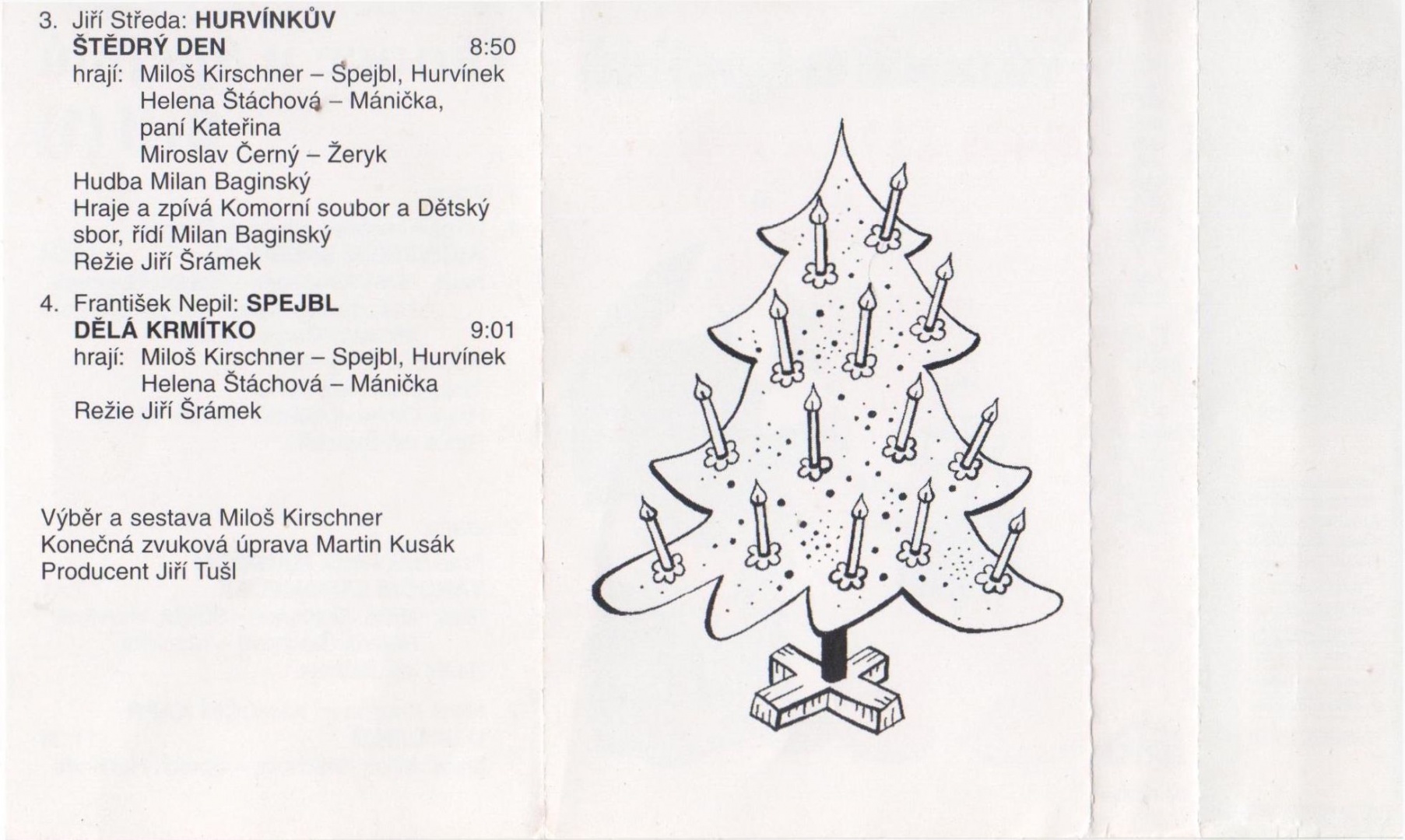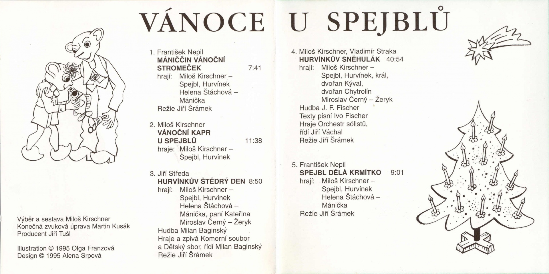 Obsahuje remasterované nahrávky Mániččin vánoční stromeček (1969), Vánoční kapr u Spejblů (1967), Hurvínkův Štědrý den (z LP Z Hurvínkova kalendáře 1976), mírně zkrácenou verzi Hurvínkův sněhulák (1973) a Spejbl dělá krmítko (1974).