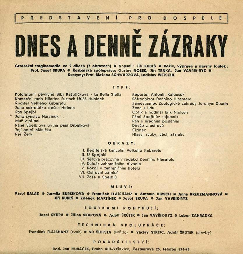 loutky vodí: Josef Skupa, Jiřina Skupová, Adolf Šrůtek, Jan Vavřík-Rýz, Lubor Zahrádka
