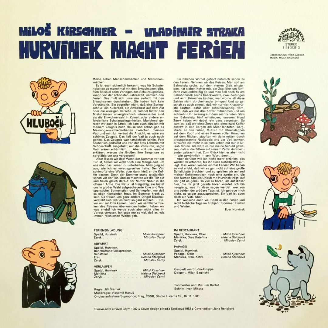 Česká i německá verze prázdninových příhod vznikla ve stejné době. Ruchová koláž je tedy v obou verzích buď stejná, nebo podobná. Totéž platí i o stereo bázi a o muzice Milana Baginského. Na konci německé desky pak Hurvínek vyzve posluchače, že další prázdninové příhody najdou na gramofonové desce Spejbls Urlaub mit Hurvínek.