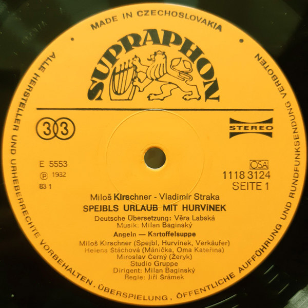 Wie ich mir also sagen ließ, ist im Urlaub beiweitem nicht alles erlaubt, in manchen Gewässern kann man aber doch Fische fangen, sofern überhaupt welche da sind. Und wenn auch das Angeln eine scheinbar ruhige und stille Unterhaltung ist, so kann es einem in Gesellschaft unseres Vatis die mannigfaltigsten und ungeahntesten Erlebnisse bieten. Dasselbe läßt sich auch von anderen Unterhaltungen sagen. Nur daß es halt mit den Erwachsenen ständig Schwierigkeiten gibt, ganz besonders in den Ferien, denn da sind sie gezwungen, auf ihre Bequemlichkeit, auf ihren gewohnten Lehnstuhl, auf den regelmäßigen Zu-schub von Tagespresse und schwarzem Kaffee zu verzichten. Am Wasser, im Wald, in den Bergen und auf der Reise führen sich die Erwachsenen noch verwirrter auf als daheim. Die Schuld an allen Schwierigkeiten schieben sier versteht sich, uns zu. Nur damit sie vor uns nicht so albern aussehen. Ich habe so meine Erfahrungen in der Sache. Wir haben sie zur Warnung und Mahnung auf diese Schallplatte aufgenommen. Davon, was vorausgegangen war, welch ein verrücktes Durcheinander herrschte, bevor wir uns der Mutter Natur in die Arme stürzen konnten, davon erzählt die Schallplatte Hurvinek macht Ferien. Ich empfehle sie euch wärmstens. Damit ihr auch über alles Bescheid wißt.