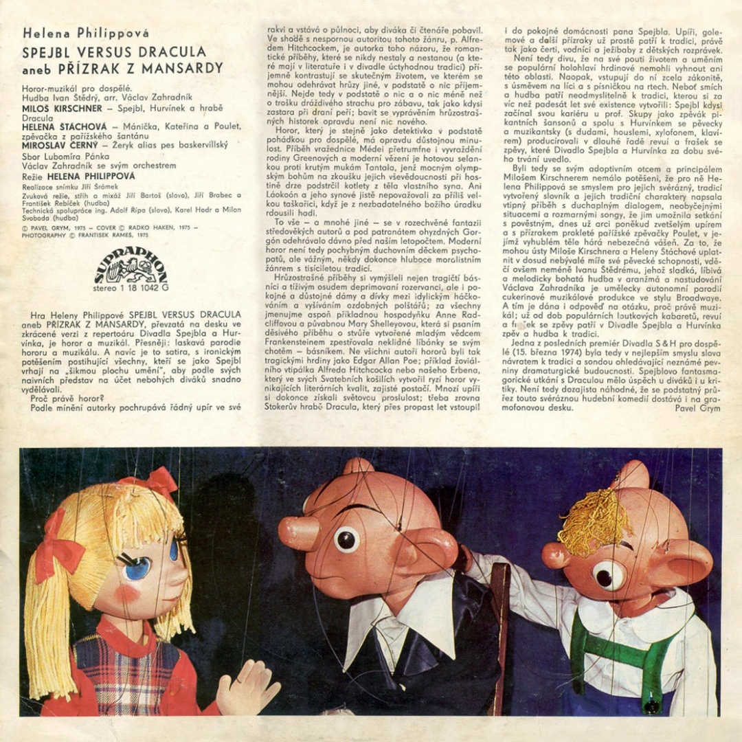 Jedna z posledních premiér Divadla S & H pro dospělé (15. března 1974) byla tedy v nejlepším smyslu slova návratem k tradici a sondou ohledávající neznámé pevniny dramaturgické budoucnosti. Spejblovo fantasmagorické utkání s Draculou mělo úspěch u diváků i u kritiky. Není tedy dozajista náhodné, že se podstatný průřez touto svéráznou hudební komedií dostává i na gramofonovou desku.
