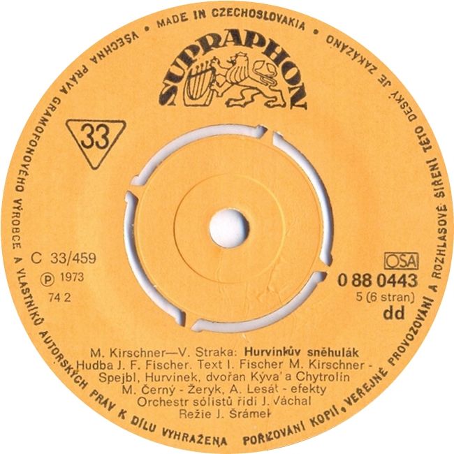 V inscenaci až na Žeryka sehrál všechny postavy Miloš Kirschner a v pětiroli se mu podařilo účastníky modulačně důkladně odlišit tak, aby každý měl svou nezaměnitelnou polohu. Kromě typických hlasů Spejbla a Hurvínka mluví jeden dvořan velmi hluboko, král je témbrem uprostřed a druhý dvořan vysoko. Díky míchání více stop můžeme v jednu chvíli slyšet Miloše Kirschnera hned v několika figurách. V nahrávce se navíc poprvé pracuje se scénickou hudbou. Kromě písniček jsou zde podkresy a hudební nástroje znázorňují i zvukové efekty – přikládání do krbu či nárazy. Kompletní záznam inscenace Hurvínkův sněhulák najdete na stejnojmenném albu.