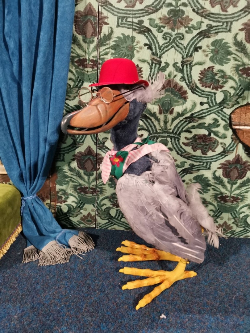 Nezvaným hostem není nikdo jiný než lstivý a agresivní Člunozubec, který všechno ví, všude byl a neplatí na něj žádné logické argumenty. Jednoaktová groteska s nedorozuměním může směle začít. Na rozdíl od předchozích inscenací, jsou v této hojně využívané archaismy a anachronismy tematické a korespondují s jednotlivými dějovými a charakterizačními motivy. Josef Spejbl je hrdý žižkovský Pepík fandící Klokanům a ví, že od Dejvic po Libeň si na žižkovské Pepíky, na tu šlechtu, ukazují prstem. Kterým, taťuldo? – Prostředníkem. A sem tam za to dostanou „flákanec“. Inscenace absorbuje v hojné míře vtipy pro starší, které jsou sice nerušivé ve vztahu k obsahu pro děti, ale zato mají hodně kolísavou úroveň. Často jsou zbytečně laciné a málo chytré (Bábinka: Husa je hotová – dáte si biskupa? Ne toho z Vatikánu.) Skupovská tradice podle mě nevylučuje posílat přes hlavy dětí vtipné vzkazy k dospělým, ba naopak, vyžaduje to a vyzývá k tomu. A mohou to být v duchu tradice i fóry provokativně využívající humor lidový. Neměly by ale sklouznout k humoru pivnímu, hláškám jak z filmů Zdeňka Trošky. Bábinčin song o životě „jako flám“ je efektní, ale mimo charakter postavy. Inscenace přiznává odkryté loutkoherce, což významně přispívá divadelní dynamice, stejně jako přiznaní hlasoví interpreti (jde o dělenou interpretaci), oblečení do černého základu s černými buřinkami, v zelených vestičkách se žlutočervenou květinou na klopě. Prokázali skvělou energii při herecky pojatých písničkových přestavbách. Nechyběla zcizující komunikace mezi loutkou a loutkohercem ani mimoslovní komentáře od jednoho loutkoherce k druhému. Živost těchto komentářů je občas ve smutném kontrastu ke zmrtvěle zdlouhavému textu pro loutky.