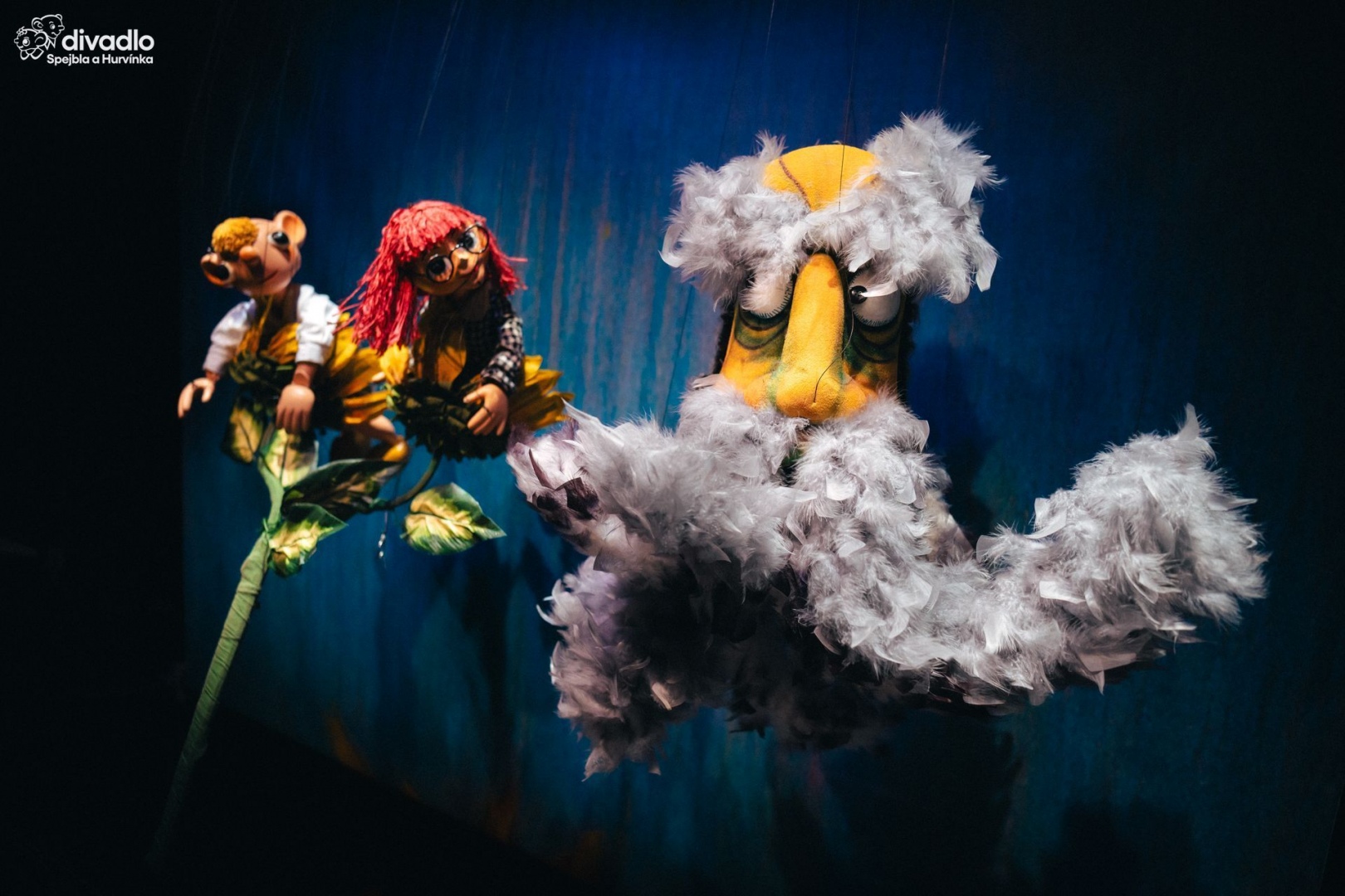 Naproti tomu loutka ceremoniáře jen stojí a dlouho mluví a loutkoherec ani dostatečně nevyužívá její otvírací ústa. Expozice je nejslabším místem inscenace, která má jinak i celou řadu světlých míst. Ať už jsou to výtvarné triky a efekty s poletujícím chmýřím pampelišek, se slunečnicí, která vyroste, když ji Mánička zalije slzami, a vynese ji i s Hurvínkem do nebes, nebo transfer Máničky s Hurvínkem do podzemí v kokpitu dešťové kapky. Sugestivní jsou plastické loutky větru nebo mraku, který se ždíme. Sobecká princezna Gerbera bere Žeryka jako rukojmí k masožravce. Chce za něj modré z nebe dříve, než rozfoukané chmýří z odkvetlých pampelišek alias semínka spadnou zpět na zem. Příběh má skvělou pointu, když se dozvíme, že modré z nebe je právě blahodárný déšť. Bohužel není z příběhu jasné, v čem spočívá tolik skloňovaná vina princezny Gerbery za ničivé sucho v Tramtárii. Princezna jev závěru potrestána čištěním pramenů, ale nevíme, ani za co je trestána, ani jestli jde jen o trest, nebo o prostředek nápravy.