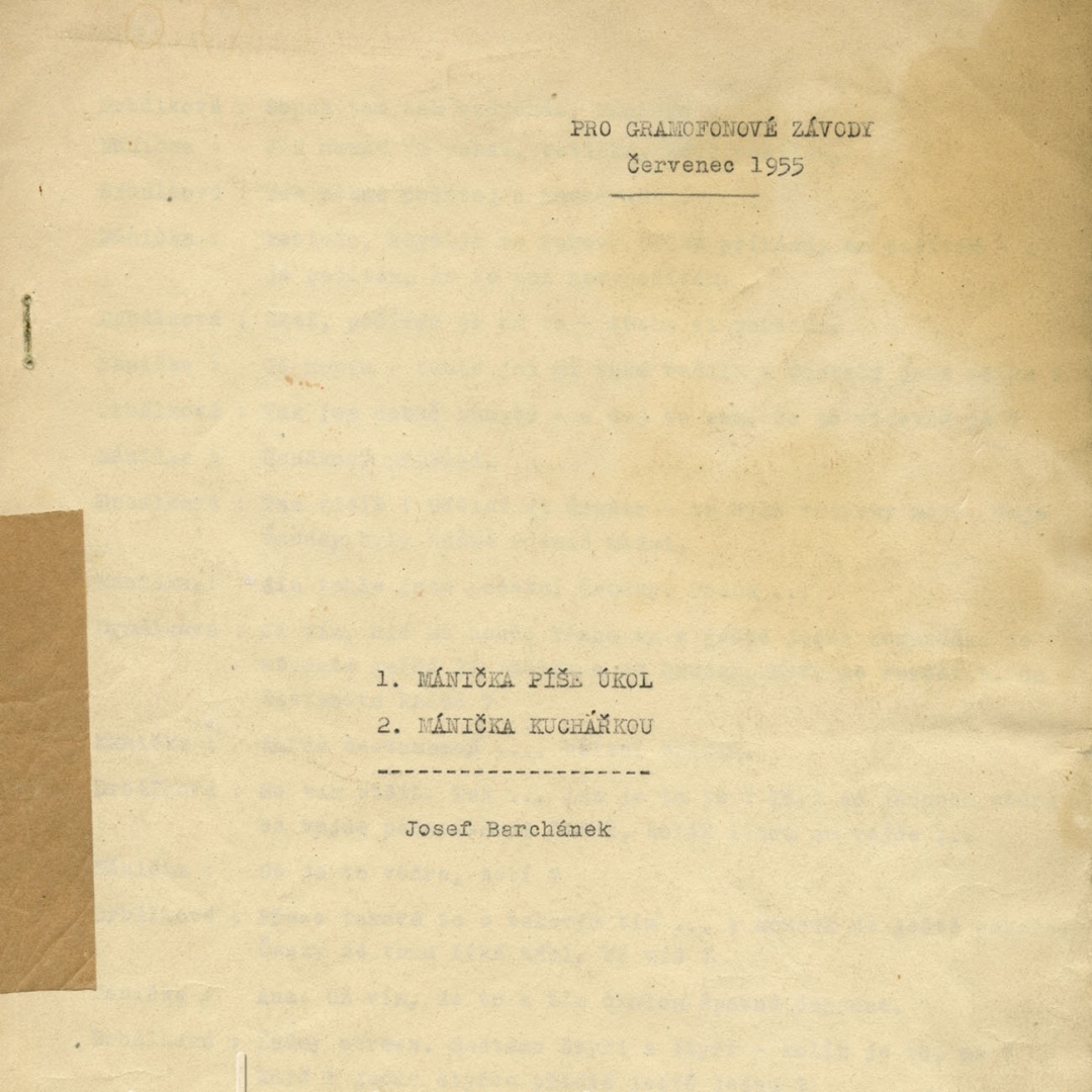 Scénář k těmto dvěma scénkám napsal Josef Barchánek v červenci roku 1955 původně pro postavy Máničky a paní Drbálkové. Jak plyne z dochovaného strojopisného scénáře uloženého v Muzeu loutkářských kultur v Chrudimi, původní názvy scének byly 'Mánička píše úkol' a 'Mánička kuchařkou'. Zatímco konečná verze první scénky jak je nahraná na gramofonové desce se obsahově až na pár drobností oproti původnímu scénáři příliš neliší, ve druhé scénce jsou rozdíly větší. V původní verzi scénáře nejsou například vůbec zmínky o "pavlačové plenárce tetinky" či bílé "vyplajchované rase". Naopak je zde uvedeno vaření švestkových knedlíků, na jejichž přípravu má najít Mánička recept v kuchařce. Mírně odlišné jsou pak i názvy "cizokrajných" jídel, která z přeházené kuchařky, která je "volně sypaná v krabici", v závěru scénky na gramodesce předčítá Hurvínek.