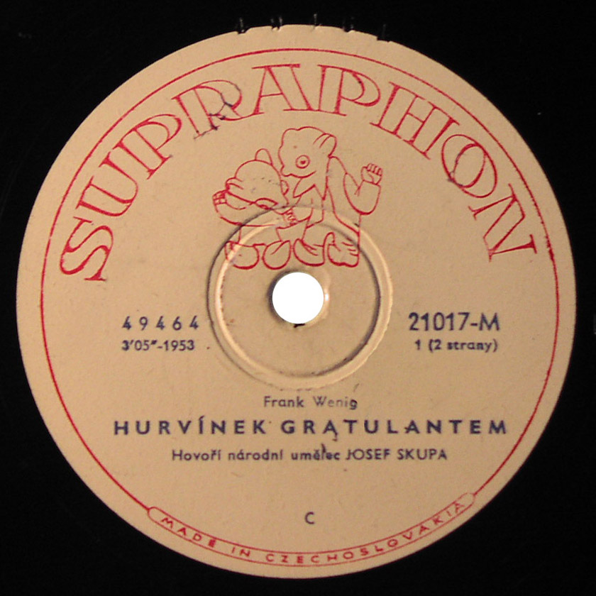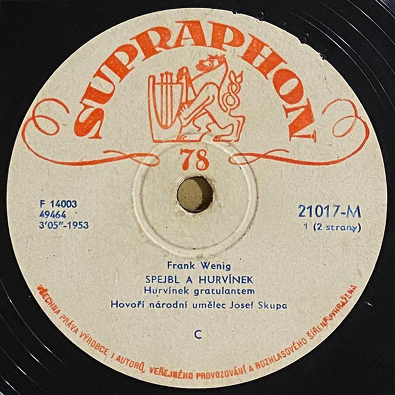 Na jedné verzi etiket je špatně uvedeno jméno autora, citujme k problematice autorství z knihy Pavla Gryma - Hovory u Spejblů: Frank Wenig: "Samozřejmě, že někdy za ta dlouhá léta došlo i k rozladění, ale to byly převážně přátelské tvůrčí spory. Jen jednou jsme se trochu poškorpili. To když Ultraphon natočil první desky se Spejblem a Hurvínkem a na etiketách byl nějakým nedopatřením jako autor uveden pouze Skupa. To mě samozřejmě mrzelo. Skupa mi pak na usmířenou koupil gramofon, abych si desky vůbec mohl přehrát, ale oprava na deskách trvala dost dlouho. V Malíkově soupisu desek v knize Úsměvy dřevěné Thálie jsou už údaje opraveny."