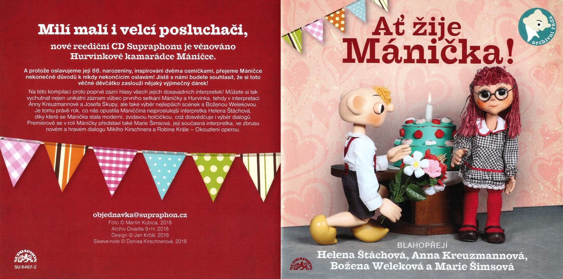 Když bylo Spejblovi a Hurvínkovi samotným smutno, objevila se obvykle vzorná, občas hubatá a vždycky dobrá kamarádka Mánička! Ač u žen a dívek se to galantně nemá prozrazovat, tady snad můžeme: právě slaví 88. narozeniny. Producentka Denisa Kirschnerová k tomu výročí vybrala ty nejzajímavější scénky v podání všech dosavadních historických interpretek. Zásadní podíl tu logicky má jedinečná Helena Štáchová, kterou si s Máničkou právem nejvíce spojujeme. Řada však logicky přijde i na Annu Kreuzmannovou a Boženu Welekovou mluvících tuto navždy nestárnoucí divadelní dívku v nahrávkách od třicátých do šedesátých let. Velkou příležitost tu poprvé dostane Marie Šimsová, nová představitelka postavičky, bez které by byl Hurvínkův svět nekompletní.