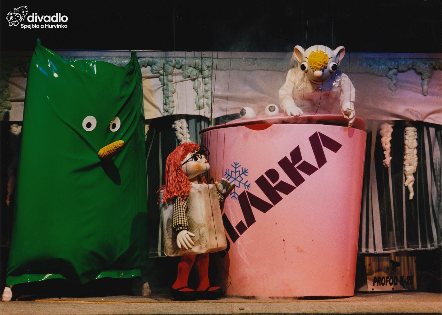 Hurvínek - mluví: Martin Klásek; Hurvínek - vodí: Michal Barták (alternace); ~ Aleš Horňák (alternace); Spejbl - mluví: Martin Klásek; Spejbl - vodí: Richard Maška (alternace); ~ René Hájek (alternace); Mánička - mluví: Helena Štáchová; Mánička - vodí: Květa Plachetková (alternace); ~ Michaela Stejskalová (alternace); Kateřina - mluví: Helena Štáchová; Kateřina - vodí: René Hájek (alternace); ~ Alena Macháčková (alternace); Žeryk - mluví: Miroslav Polák; Žeryk - vodí: Miroslav Polák (alternace); ~ Josef Ešpandr (alternace); Náčelník - mluví: René Hájek; Náčelník - vodí: René Hájek; Von Bonbón - mluví: Miroslav Polák; Von Bonbón - vodí: Josef Ešpandr (alternace); ~ Miroslav Polák (alternace); Albert - mluví: Martin Klásek; Albert I. - vodí: René Hájek (alternace); ~ Richard Maška (alternace); Albert II. - vodí: René Hájek (alternace); ~ Alena Macháčková (alternace); Žužu I. - vodí: Josef Ešpandr (alternace); ~ Aleš Horňák (alternace); Žužu II. - vodí: Miroslav Polák (alternace); ~ Vlado K. Maric (alternace); Lentilky I. - vodí: Josef Ešpandr (alternace); ~ Aleš Horňák (alternace); Lentilky II. - vodí: Miroslav Polák (alternace); ~ Vlado K. Maric (alternace); Lízátka: Richard Maška (alternace); ~ Alena Macháčková (alternace); Ryba - mluví: Miroslav Polák; Ryba - vodí: Aleš Horňák (alternace); ~ Vlado K. Maric (alternace); Pizza 1 - mluví: Alena Macháčková; Pizza 1 - vodí: René Hájek; Pizza 2 - mluví: Květa Plachetková; Pizza 2 - vodí: Miroslav Polák; Polárka - mluví: Michaela Stejskalová; Polárka - vodí: René Hájek; Pytlík "Legume" - mluví: Květa Plachetková; Pytlík "Legume" - vodí: Aleš Horňák (alternace); ~ Vlado K. Maric (alternace)