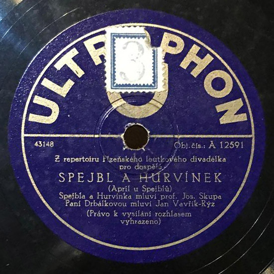 V nahrávce Apríl u Spejblu je zachycena postava paní Drbálkové, která vytvářela jednu z hlavních rolí Kolotoče o třech poschodích a kterou vytvořil (jako autor loutky i jako interpret) Jan Vavřík-Rýz. Tento výstup však z této hry nepochází a i charakter Drbálkové se proměňuje. Zatímco v divadelní inscenaci je krutá a pomstychtivá paní domácí, v gramofonové nahrávce její sociální zařazení sice zůstává, zlomyslnost se však transformuje do téměř nevinného aprílového žertíku.