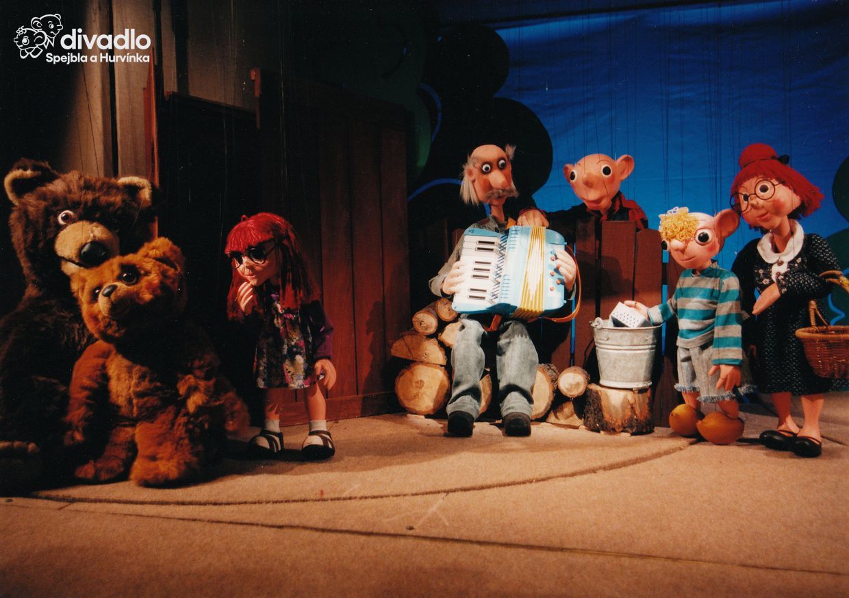Spejbl (mluví): Martin Klásek, Ondřej Lážnovský; Spejbl (vodí): Richard Maška (alternace); ~ Luboš Homola (alternace); Hurvínek (mluví): Martin Klásek, Ondřej Lážnovský; Hurvínek (vodí): Michal Barták (alternace); ~ Miloš Königsmark (alternace); Mánička (mluví): Helena Štáchová, Marie Šimsová; Mánička (vodí): Květa Plachetková (alternace); ~ Josef Ešpandr (alternace); ~ Michaela Stejskalová (alternace); Bábinka (mluví): Helena Štáchová, Marie Šimsová; Bábinka (vodí): René Hájek (alternace); Bábinka (vodí): Alena Macháčková (alternace); Medvědář (mluví): Miroslav Polák; Medvědář (vodí): Michal Barták (alternace); ~ Miloš Königsmark (alternace); Medvídek č. 1 (mluví): Vlado K. Maric; Medvídek č. 1 (voděn střídavě): ; Medvídek č. 2 (mluví): Miroslav Polák; Medvídek č. 2 (voděn střídavě): ; Medvědice (mluví): Vlado K. Maric; Medvědice (vodí): René Hájek (alternace); ~ Alena Macháčková (alternace)