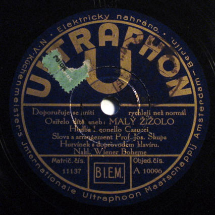 Na etiketě uvedeno "Elektricky nahráno - N V Küchenmeister's Internationale Ultraphoon Maatschappij Amsterdam-Berlin".