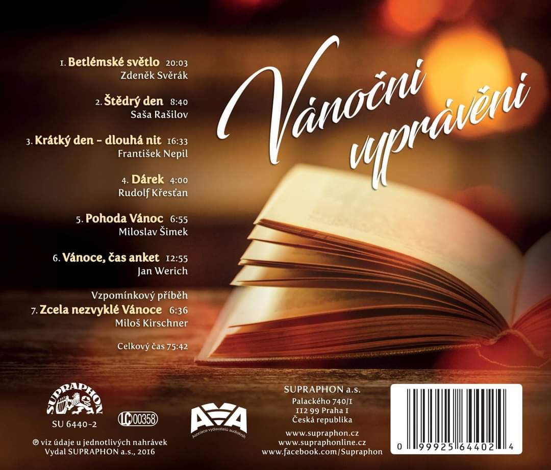 Výběr českých vánočních povídek a vyprávění od našich oblíbených autorů a interpretů. Příběhy speciálně zvolené pro poslech (nejen) v adventním čase. Čeští spisovatelé a herci píší a vyprávějí o Vánocích. Pánové Jan Werich, Zdeněk Svěrák, František Nepil, Rudolf Křesťan, Michal Viewegh, Saša Rašilov, Miloslav Šimek, Jiří Grossmann a Miloš Kirschner jsou tou nejlepší společností pro dlouhé zimní večery.