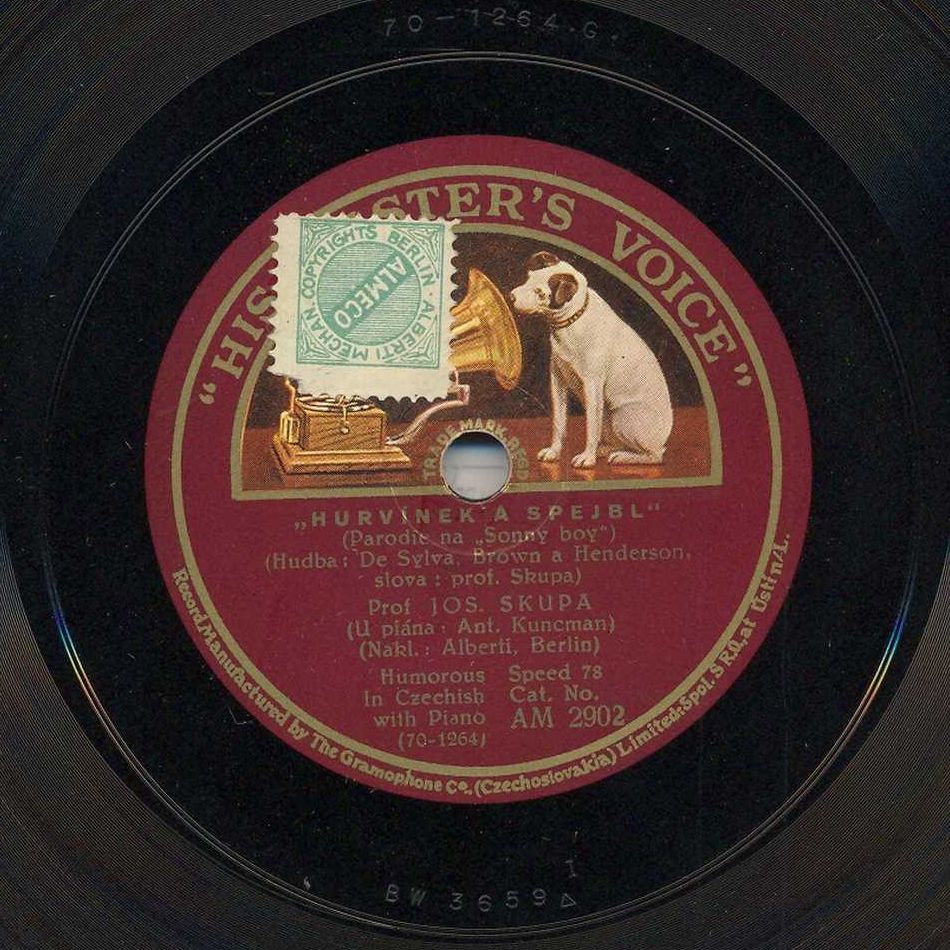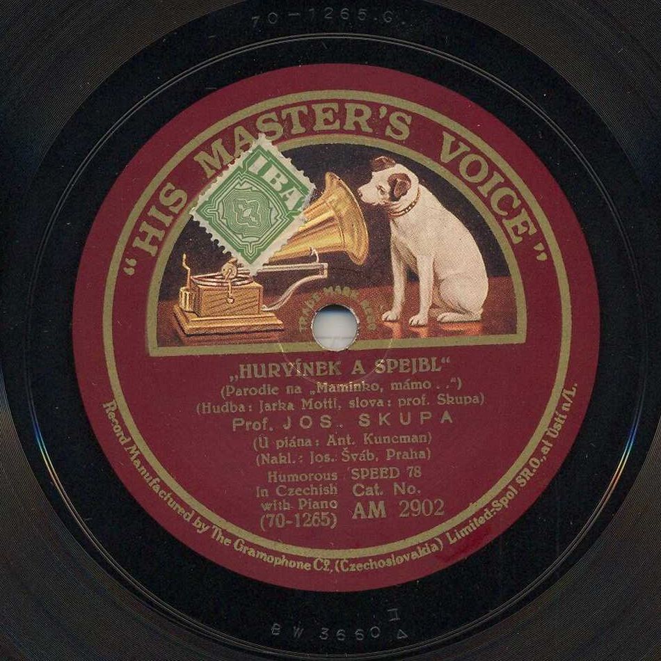 Nahráno ve Velkém studiu v Nár. domě v Praze XII. Vyrobeno v Gramophone Co. (Czechoslovakia) Limited-Spol. SR.O. Ústí n/L.