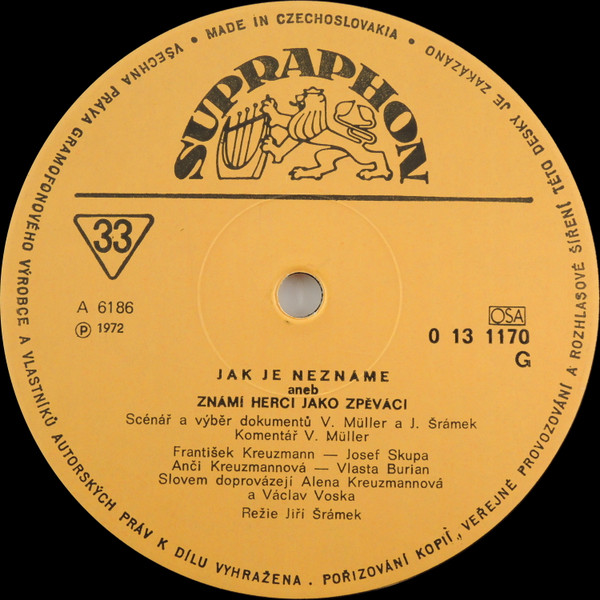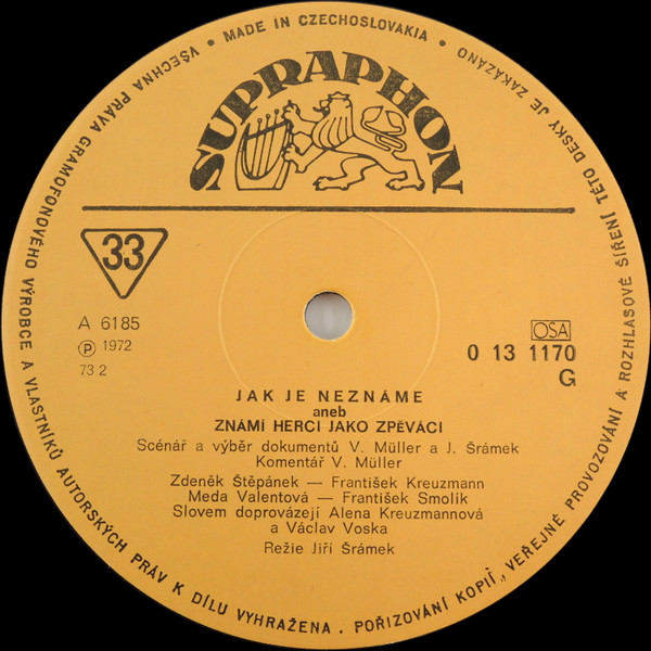 Jak je neznáme aneb známí herci jako zpěváci - povídání a písně známých herců. Účinkují: Vlasta Burian, Libuše Freslová, Otomar Korbelář, František Kreuzmann, Josef Skupa, František Smolík, Zdeněk Štěpánek, Meda Valentová, Alena Kreuzmannová, Václav Voska.