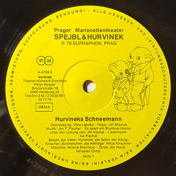 Původně nehurvínkovský námět byl nastudován z hlediska interpretace pouze s Milošem Kirschnerem a Miroslavem Černým coby Žerykem. Kirschner tedy mluvil za pět hlasově i charakterově odlišných postav. Mánička původně ve Sněhulákovi kvůli zdravotním komplikacím Heleny Štáchové nebyla, později do něj byla Milošem Kirschnerem a Vladimírem Strakou dopsána. V české nahrávce tedy Mánička neúčinkuje, v němčině už ano. Dlužno dodat, že se ono dopsání Máničky v německé verzi příliš neprojevilo – postava nebyla pro nahrávku z hlediska děje příliš rozvinuta a ve snímku se stala jen nahrávajícím prostředníkem mezi Spejblem a Hurvínkem.