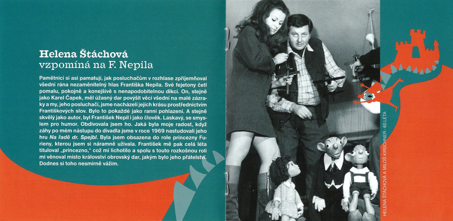 "Pamětníci si asi vzpomenou, jak posluchačům v rozhlase zpříjemňoval všední rána nezaměnitelný hlas Františka Nepila. Své fejetony četl pomalu, pokojně a konejšivě s nenapodobitelnou dikcí. On, stejně jako Karel Čapek, měl úžasný dar povýšit věci všední na malé zázraky a my, jeho posluchači, jsme nacházeli jejich krásu prostřednictvím Františkových slov. Bylo to pokaždé jako ranní pohlazení. A stejně skvělý jako autor, byl i František Nepil jako člověk. Laskavý, se smyslem pro humor. Obdivovala jsem ho. Jaká byla proto moje radost, když záhy po mém nástupu do divadla, v roce 1969 jsme nastudovali jeho hru Na řadě dr. Spejbl. Byla jsem obsazena do role princezny Furieny, kterou jsem si náramně užívala. František mě pak celá léta tituloval "princezno“, což mi lichotilo a spolu s touto rozkošnou rolí mi věnoval místo království obrovský dar, jakým bylo jeho přátelství. Dodnes si toho nesmírně vážím."
