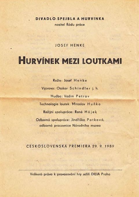 Spejbl /mluví/: Miloš Kirschner; Spejbl /vodí/: Luboš Homola; Hurvínek /mluví/: Miloš Kirschner; Hurvínek /vodí/: Bohuslav Šulc (alternace); ~ Libor Čepek (alternace); Žeryk /mluví/: Miroslav Černý; Žeryk /vodí/: Miroslav Huňka; Kašpárek /mluví/: Libor Terš; Kašpárek /vodí/: Martin Klásek; Faust /mluví/: Miloš Kirschner; Faust /vodí/: René Hájek; Mezistáfl /mluví/: Miloš Kirschner; Mezistáfl /vodí/: Ján Bošela; Vákner /mluví/: Miroslav Polák; Vákner /vodí/: Luboš Homola; Anděl /mluví/: Anna Janečková; Anděl /vodí/: Michaela Cmíralová; Hana Grančičová; Kovář: Miroslav Polák; Tovaryš: Miroslav Huňka; 1.dupák /mluví/: René Hájek; 1.dupák /vodí/: Hana Grančičová; 2.dupák /mluví/: Miroslav Černý; 2.dupák /vodí/: Pavlína Kolářová; Kominíček /mluví/: Ján Bošela; Kominíček /vodí/: Jan Šmok; Balon /mluví/: Miroslav Polák; Balon /vodí/: Renata Kubišová; Drak /mluví/: Miloš Kirschner; Drak /vodí/: Miroslav Huňka; Jan Šmok; Loupežník Luc /mluví/: René Hájek; Loupežník Luc /vodí/: Luboš Homola; Loupežník Hync /mluví/: Martin Klásek; Loupežník Hync /vodí/: Ján Bošela; Čert Pik /mluví/: Miroslav Huňka; Čert Pik /vodí/: Ján Bošela; Čert Augrón /mluví/: Miroslav Polák; Čert Augrón /vodí/: Bohuslav Šulc (alternace); ~ Libor Čepek (alternace)