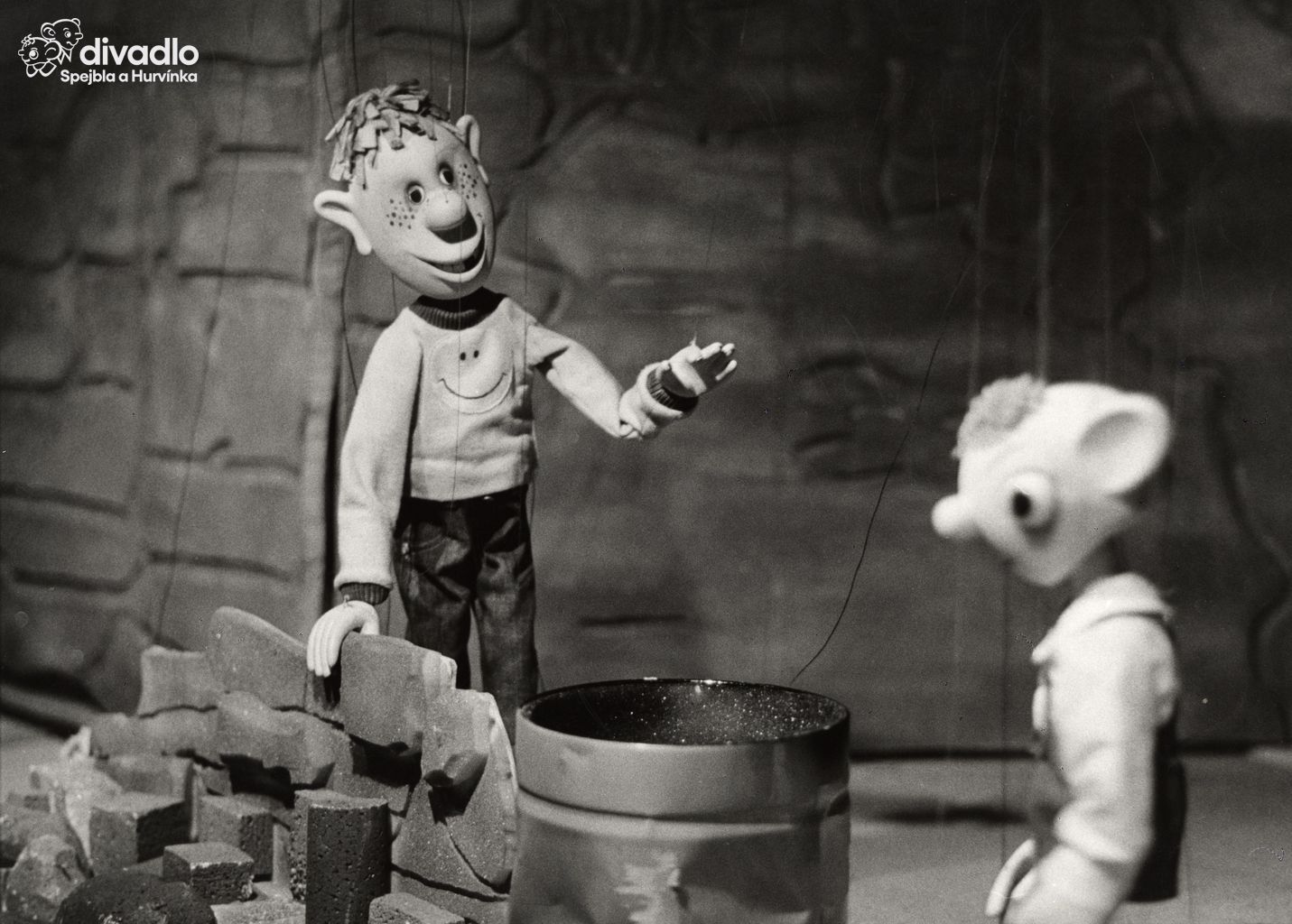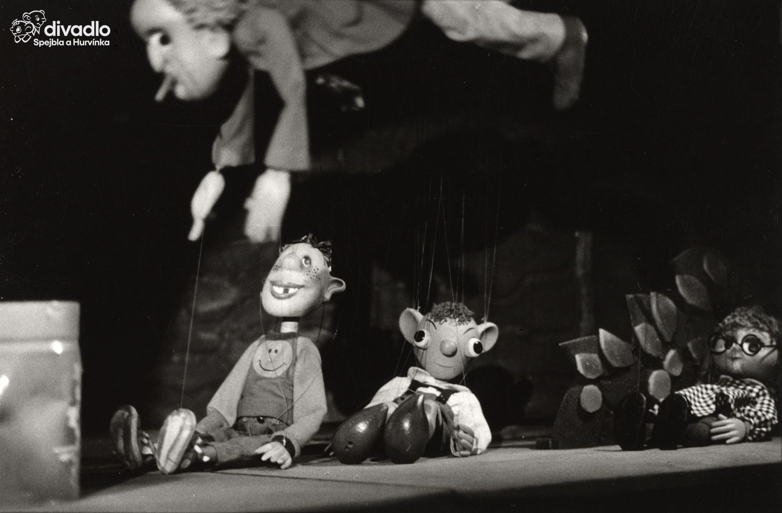Hurvínek se střetává se strašidýlky, tentokráte ale převážně těmi laskavějšími.