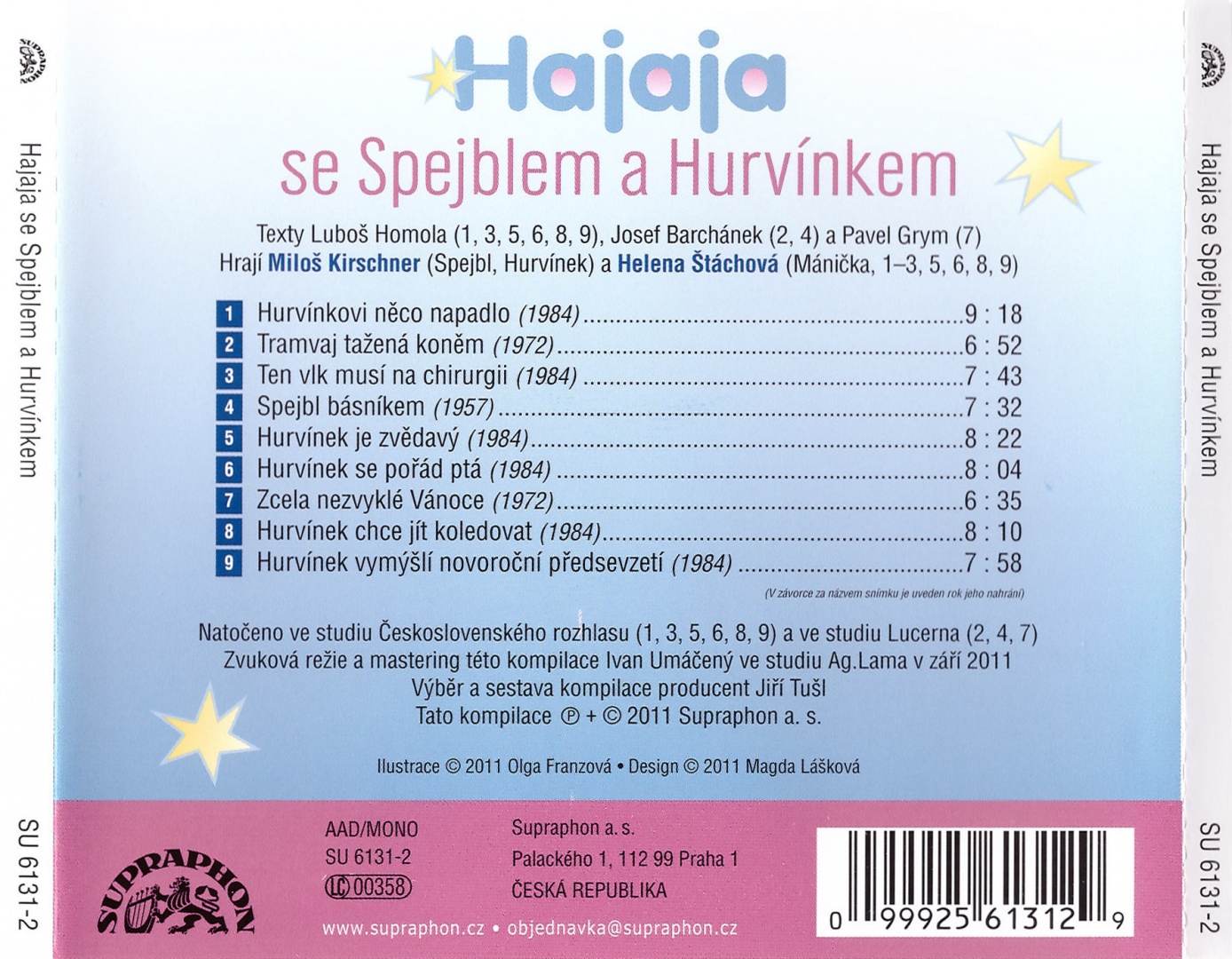Natočeno ve studiu Československého rozhlasu (1,3,5,6,8,9) a ve studiu Lucerna (2,4,7).
