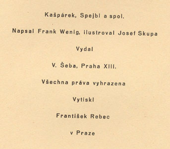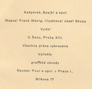 Vytiskl: grafické závody Neuber, Pour a spol, v Praze I., Bílkova 17