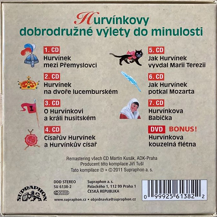 V nahrávkách Hurvínkovy dobrodružné výlety do minulosti se Hurvínek seznamuje například s Karlem IV., s husitským králem Jiřím z Poděbrad, s císařem Rudolfem II., s Marií Terezií, Mozartem i literární postavou Babičkou Boženy Němcové. K přitažlivosti kompletu přispěli nejen protagonisté a další členi Divadla S+H, ale také řada vynikajících herců. Záznam představení na bonusovém DVD, které vychází ze scénáře prvního CD Hurvínek mezi Přemyslovci, je navíc ukázkou skvělého umění loutkovodičů tohoto divadla.