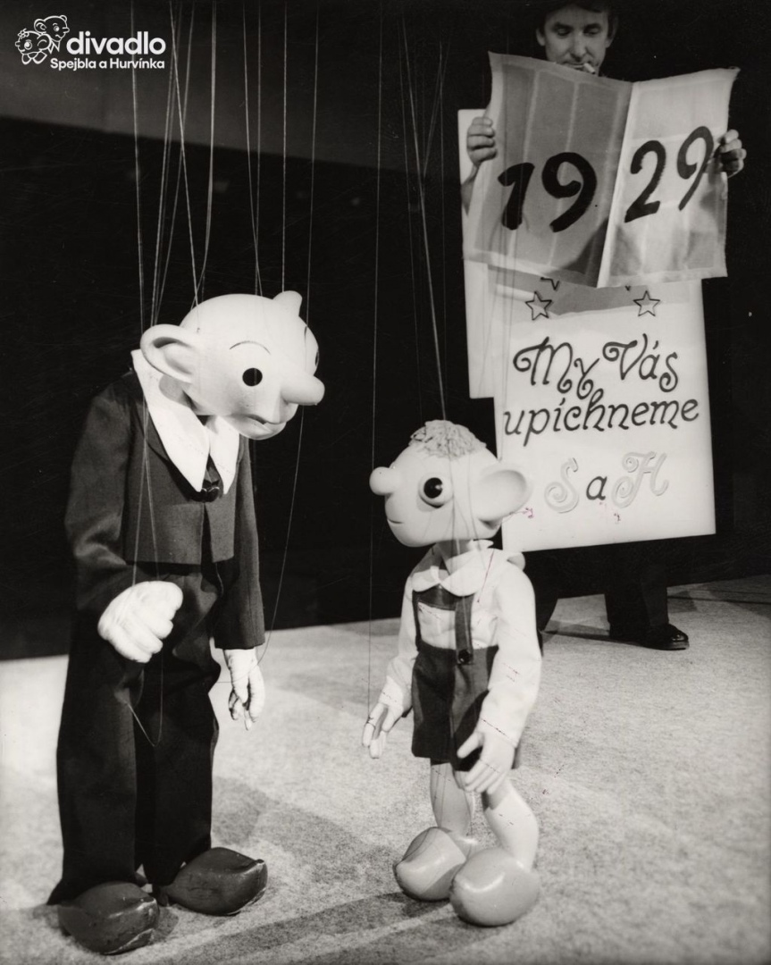 Přehlídka padesáti let Divadla S+H se s velkorysým a výpravným způsobem za pomoci padesáti loutek převážně varietního typu obrací do minulosti, současnosti a dokonce i předjímá budoucnost. Nosným dějovým motivem je Spejblův konflikt s kartářkou, která předpovídá Spejblovi úspěch, pokud třikrát neprokleje svůj velkopanský frak, který si na její výzvu z její bohaté garderoby sám vybral. Řadou mluvených, zpívaných a hudebních scén se pak rozvíjí částečně pravdivá, částečně groteskně zkreslená historie D S+H od setkání Spejbla se Švejkem a éry plzeňských kabaretů přes zrození Hurvínka, dobu krize a nástup fašismu až po radostné poválečné "divadlo národů", období schematismu a současné úvahy, jak dál.