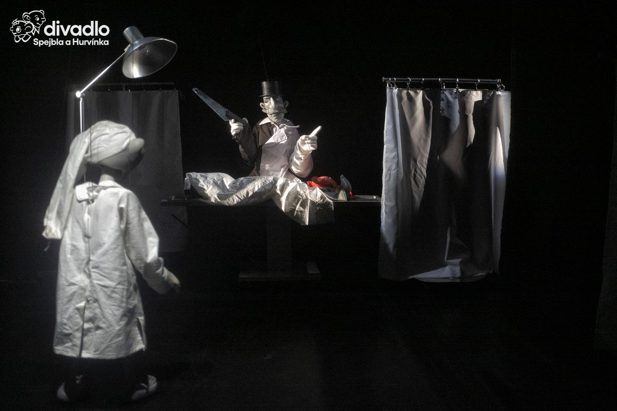 Každopádně Spejbl se propadne do noční můry, kdy na vlastní kůži pozná, jak dopadne citově deprivované dítě – stane se z něj vrah. Možná. Asi. Chybí vodítko… Situace vypadá tak, že v městečku vládne strach a panika. Tajemný vrah likviduje své oběti znenadání a slyšet jsou jen jeho dřeváky. Ty ale nosí kdekdo, alespoň v tomhle divadle. Například – Hurvínek. Marné Spejblovo hledání nezdárného syna i otázek, zda je pachatel nebo ne, provází setkávání se svéráznými figurkami, které nás opravdu přesvědčí, že tahle hra není pro děti (obzvlášť doktor Jekyll je odpudivě děsivý). Zato pan starosta může pobavit, jeho píseň o transparentnosti je teď před volbami velmi aktuální.