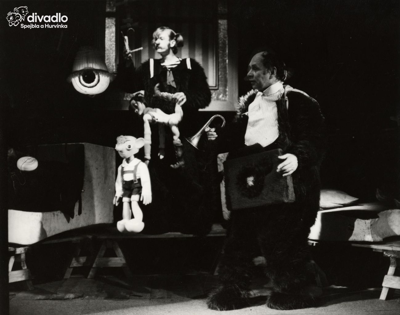 Odhalovatel: Miloš Kirschner; Hosteska: Helena Štáchová; Prof. dr. Bambulička, hlas: Miloš Kirschner; Prof. dr. Bambulička, pohyb: Luboš Homola; Doc. dr. Josef Bulička, hlas: Helena Štáchová; Doc. dr. Josef Bulička, pohyb: Miroslav Huňka; Dr. Josefa Ulička, hlas: Helena Štáchová; Dr. Josefa Ulička, pohyb: René Hájek; Dr. Josefa Ulička, pohyb: Miroslav Huňka; Josef Spejbl, hlas: Miloš Kirschner; Josef Spejbl, pohyb: Bohuslav Šulc; Děd vševěd Děvdem: Radko Haken; Dem, syn děda Děvdema: Ivan Moravec; Em, vlastní žena Demova: Kateřina Bartáková; Štéva, jejich starší syn: Pavel Vangeli; Eva, jejich mladší dcera: Květa Špačková; Medvěd Akademik: René Hájek