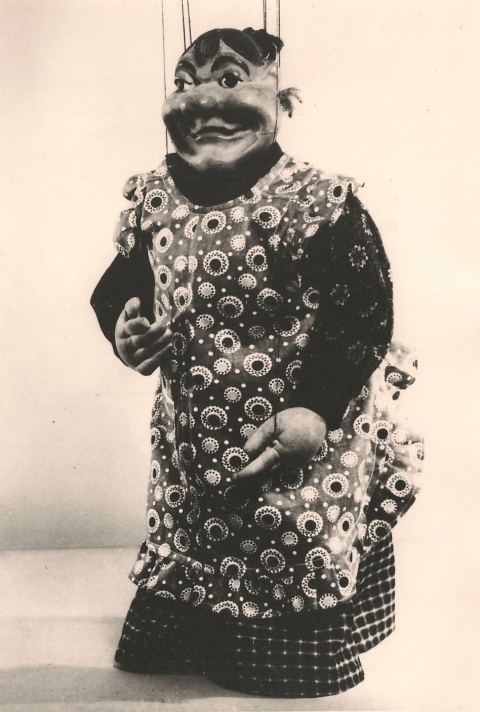 Postava výřečné babky se zrodila v červenci 1938 na plzeňském výstavišti při jubilejní výstavě původně jen jako rozhlasový hlas - z ampliónů na výstavě zaznívá prostřednictvím Jana Vavříka-Rýze skřípavý ženský hlas a "jedovatým" slovníkem komentuje tato pavlačová drbna aktuální události. Když Skupu s Wenigem napadne, že by se tahle osůbka mohla objevit i na jevišti, nenechal se Jan Vavřík-Rýz dlouho prosit a vyřezal v tvářích ducatou bábu s rozšklebenými ústy, která dovedou strojeně fňukat, špičkovat a trousit jedovatosti. V jejích rysech lze dokonce nalézt, byť pochopitelně zdeformované, rysy autora.