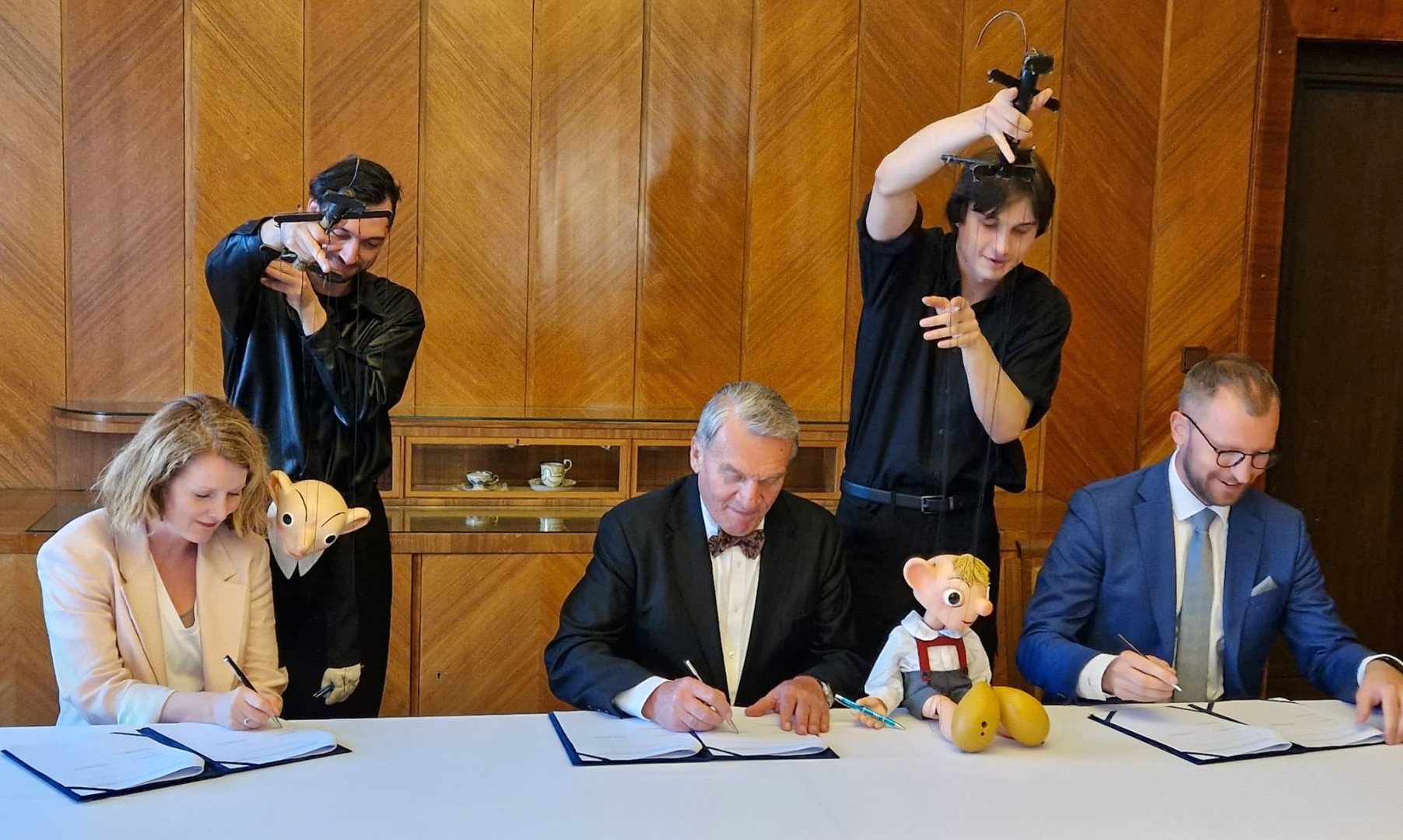 Zvídavé otázky moderátorů se točily například okolo aktivit na den dětí, který byl pro dřevěnou rodinku dost náročný, ale také kolem divadelních představení ať už nejnovější inscenace Hurvínek a král Blecha či opery Hurvínek prodává nevěstu, připravované letní scény v ZOO či plánované přístavby nové scény domovské divadelní budovy v pražských Dejvicích. Při obdivném sledování loutkohereckého a interpretačního umu směřovaly otázky obou pánů také na to, jak složité je naučit se tomuto řemeslu a co všechno obnáší být loutkohercem a mluvičem.
