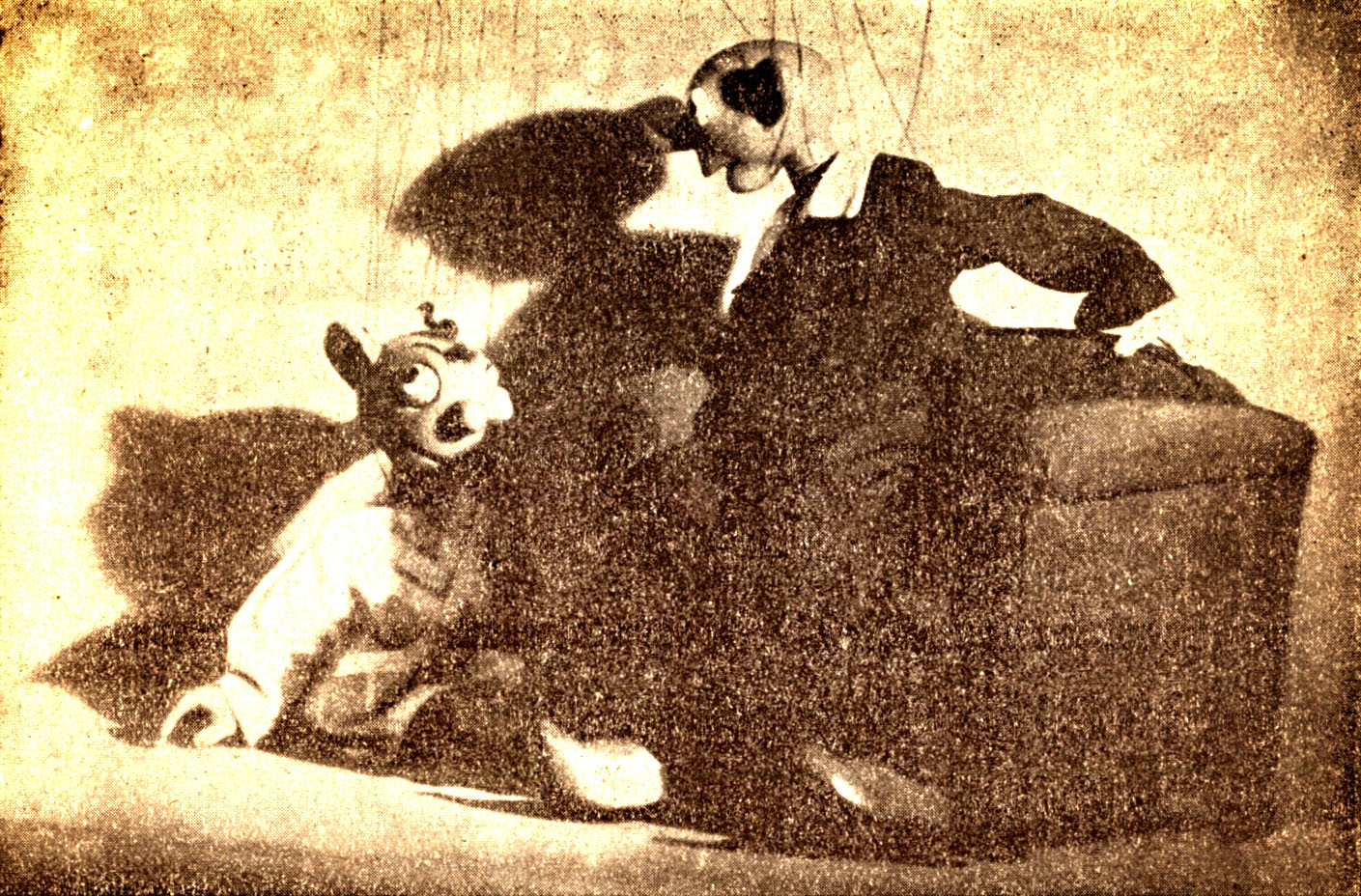 Ale ovšem to pokorné dětství by nezmohlo vše, kdyby Hurvínek se nad ně nepovznášel rozmyslným klidem, jenž se nedá ničím porušit. Oba, i on basový, loudavý, tahavý, bručavý otec Spejbl, jsou dva vzory chudým duchem, kteří se dokonale smiřují se svou duševní chudobou, protože vědí, že mají při ní dost mazané chytrosti a skrytého vtipu, aby dovedli pobavit panstvo ve svůj prospěch. Opustili zásadně ovšednělou, přežilou, vyčichlou starobu a vrhli se horlivě na módní, revuální novoty, aby jim otevřeli vstup na loutkové jeviště a aby světle dokázali, že i ono je schopno časového vývoje. Hurvínek bláznivě jezdí na bláznivé koloběžce či rychloběžce, Hurvínek zuřivě oběma rukama vyklepává na xylofon báječná hudební čísla a to znamená, že loutka nabývá nebývalé hybnosti, čilosti a rušnosti, že se řítí sem tam jevištíčkem se všemi příznaky závodního jezdce, že divokými rozmachy sleduje na nástroji věrně celé rozložení tónů až do komických výpadů varietních umělců. Podobně je tomu u Hurvínkova otce, když zpívá kuplety, když hraje na saxofon, když u radiového přístroje poslouchá motanici dvojího proplétajícího se vysílání, když zkouší hocha z počtů, mluvnice, náboženství; vězí za tím škrablavým tatíkem někdo, kdo umí výborně hrát hlasem, různými zvuky i postoji podle našich revuálních předáků, a zejména poslouchání pomíchaného rozhlasu je podáno němou hrou tak, že to svým zmodernisováním loutky překvapí. Úroveň loutkového jeviště se tu proti dřívějšku značně zvyšuje a dostupuje až k vybrané, jemné salonnosti v zpěvácích, tenoristovi a sopranistce, kteří zpívají a hrají se vší nyvou sentimentalitou zpěvu i poetickou ladností pohybů. Půvabu a kouzla je u nich více než v našich revuálních divadlech, poněvadž všechno, i dekorace, je snivější, luznější, tišší, odhmotněnější svou drobností."