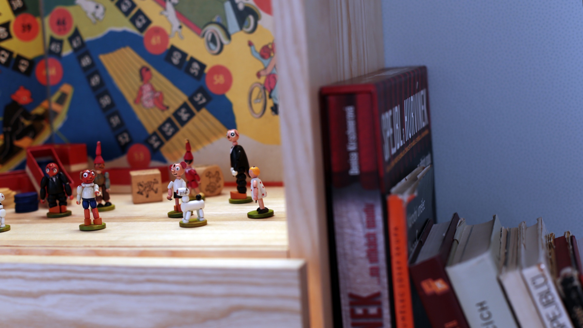 Spejbl a Hurvínek na poličce je výstava věnovaná převážně drobným loutkám, figurkám a zvukovým nahrávkám, které se díky oblibě a významu divadla Spejbla a Hurvínka staly vzácnými artikly pro řadu nadšených sběratelů. Výstava je koncipována jako volná parafráze „sběratelova pokoje“ s jeho poličkami, v kterých jsou prezentovány tyto drobné poklady. Návštěvník se tak seznámí nejen se samotným divadlem Spejbla a Hurvínka, ale i s rozličnou průmyslovou produkcí zabývající se loutkami a figurkami. Na výstavě tak můžete poznat dřevěné, sádrové, ale i skleněné postavičky této známe komické dvojice. Pro děti a nejen pro ně může výstava získat i detektivní podtext, když se vydají po stopách zmizelého Hurvínka, který utekl ze své poličky a skryl se někde v muzeu.
