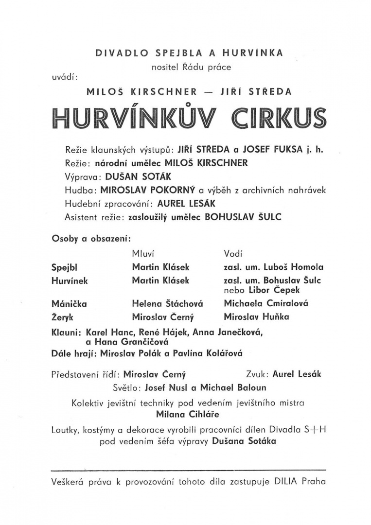 Přehled a informace o počtech repríz po roce 1990 vychází z dostupných materiálů archivu D S+H (výroční zprávy), divadelních programů, Institutu umění - divadelní institut, archivu města Plzně a rovněž z osobních záznamů Pavla Gryma, který dlouhá léta působil jako historik a archivář D S+H a který tyto informace sepsal do několika svých publikací (zejména Klauni v dřevácích a Divadlo dřevěných hvězd). Jsou-li v něm mezery nebo nepřesnosti, například v termínech premiér nebo v osobách, je to většinou odraz neúplné dokumentace.
