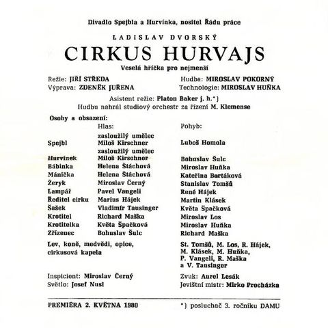 první provedení 2.9.1958 v Rokycanech, II. premiéra 8.10.1958 v Praze