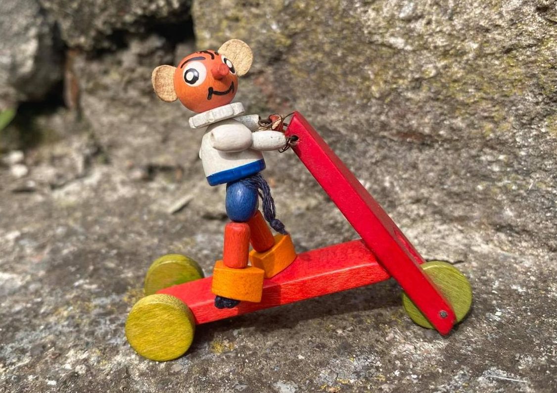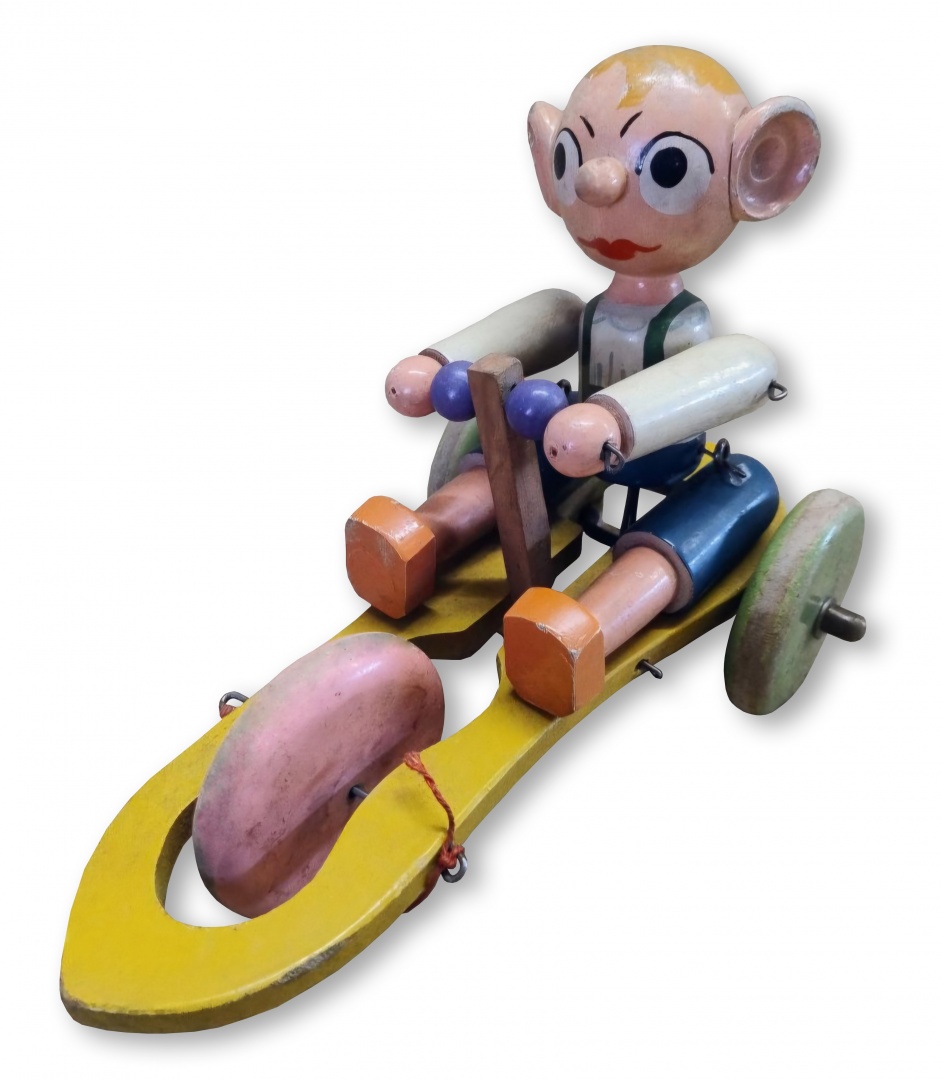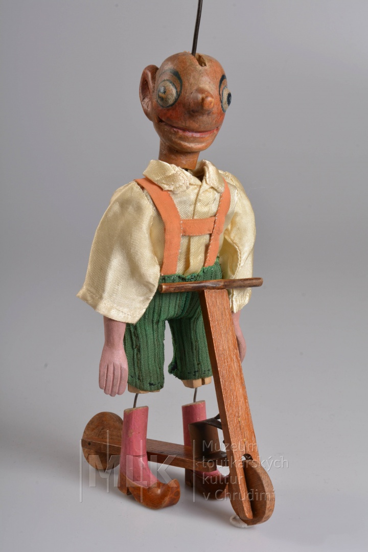 Firma MÚ Brno prodávala dřevěnou tahací hračku Hurvínka s xylofonem (rozměry: 11×21×19,5 cm).