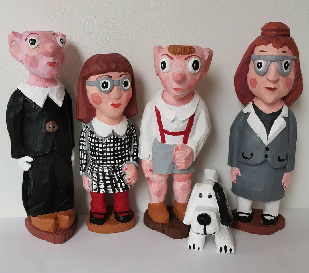 Firma Království loutek s.r.o. vyrábí ve své chráněné dílně loutky nápadně podobné dřevěné rodince, z důvodu ochrany autorských práv jsou však prodávány pod jinými obchodními názvy - tatíček, synáček, Marjánka a tetička. Výška dřevěných loutek je 22 cm.