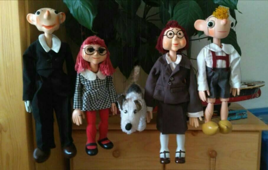- větší série: Spejbl 47 cm, Bábinka 52 cm, Hurvínek 35 cm, Mánička 33 cm + Žeryk