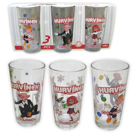 Sada 3 ks skleniček obsahuje skleničku s motivem Hurvínka, Máničky a skleničku s motivem Spejbla (6,5 x 12 cm).