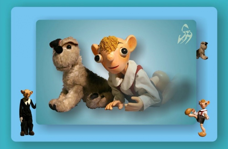 Skleněná figurka Hurvínka ze Žerykem (J. Brychta, cca 1955)