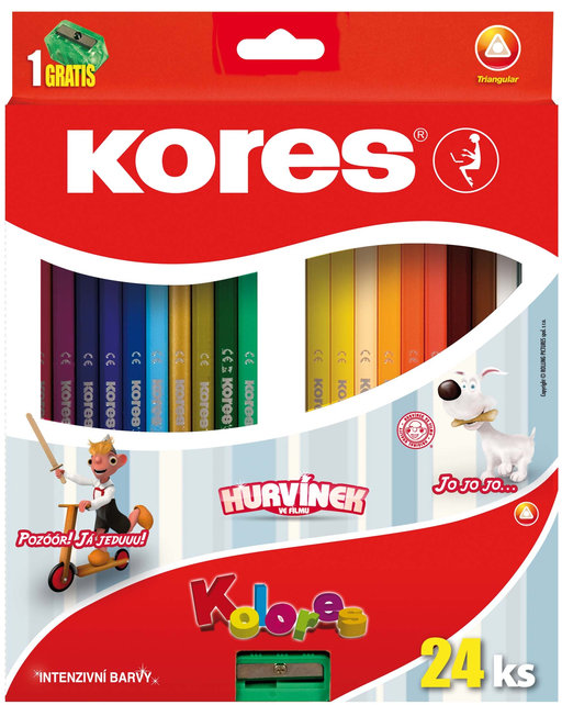 - Pastelky Kores Kolores Hurvínek (24 kusů - 113 Kč; 12 kusů - 58 Kč; 6 kusů - 31 Kč)